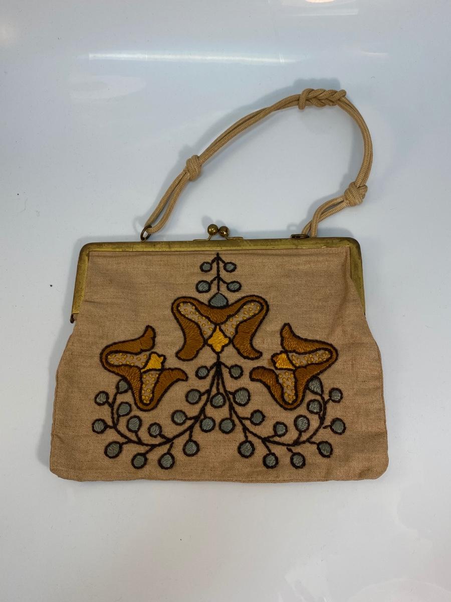 Vintage Muted Tone Floral Embroidered Handbag Purse