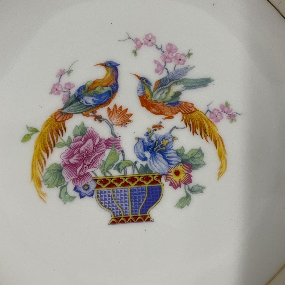 Set of 12 Vintage coupe soup bowls by Czechoslovakian china manufacturer MZ Altrohlau. Pattern is called Cellini and it boasts blue and pink flowers in an urn planter flanked by two birds, all on a white field with a beige banded border featuring assorted flowers. Bowl measures 7 5/8" diameter and has a gold rim. There are 12 bowls available, all in excellent condition with little to no knife marks and minor wear to the gold rim. Price is per piece, a bundle discount is available for bulk purchases. # 1232