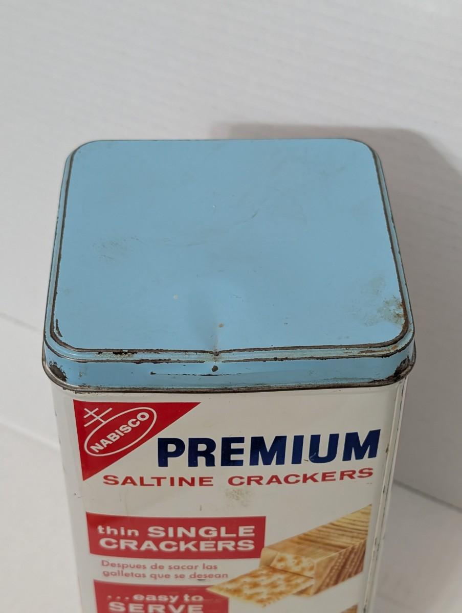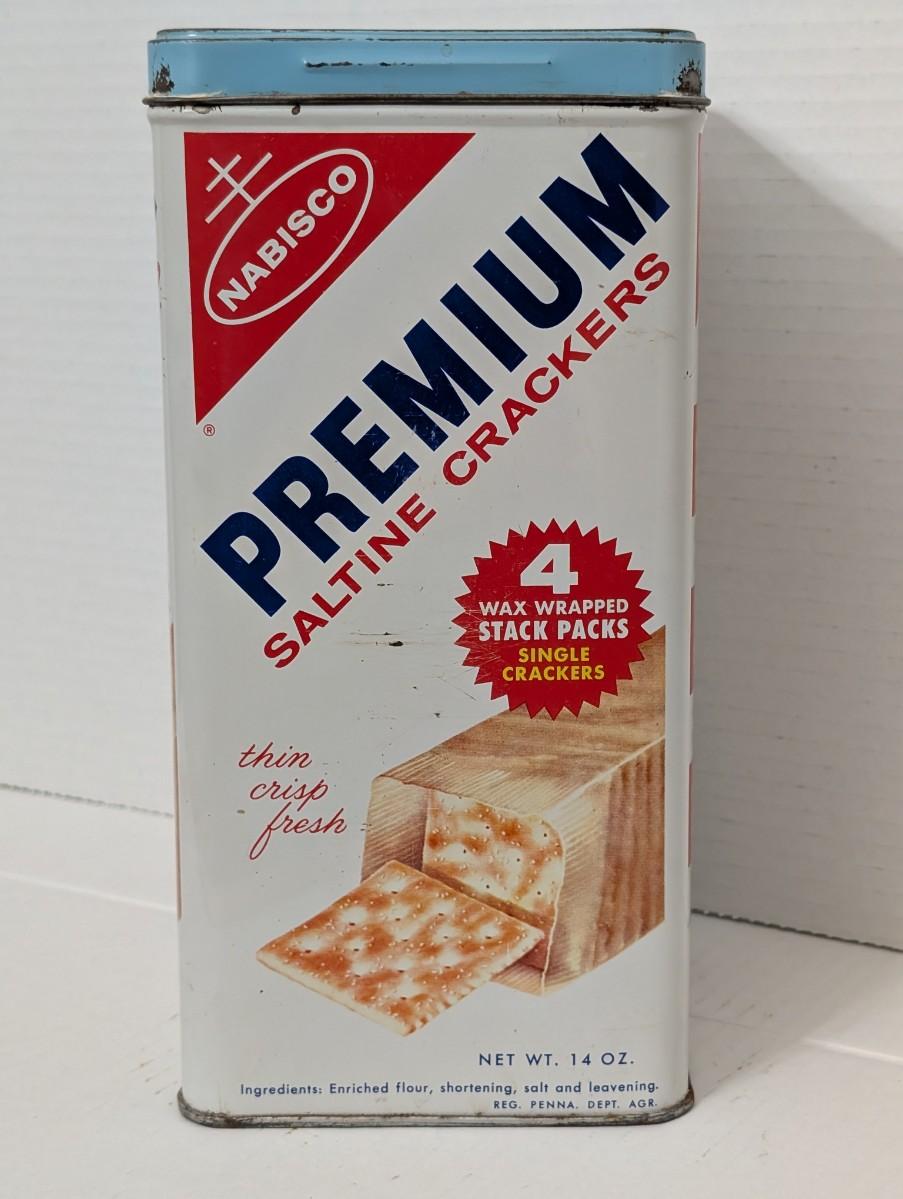 vintage Nabisco tin, Premium Saltine Crackers, retro kitchen canister, advertising tin, food packaging collectible, vintage pantry decor, cracker tin, mid century kitchenware, Nabisco memorabilia, collectible tin container