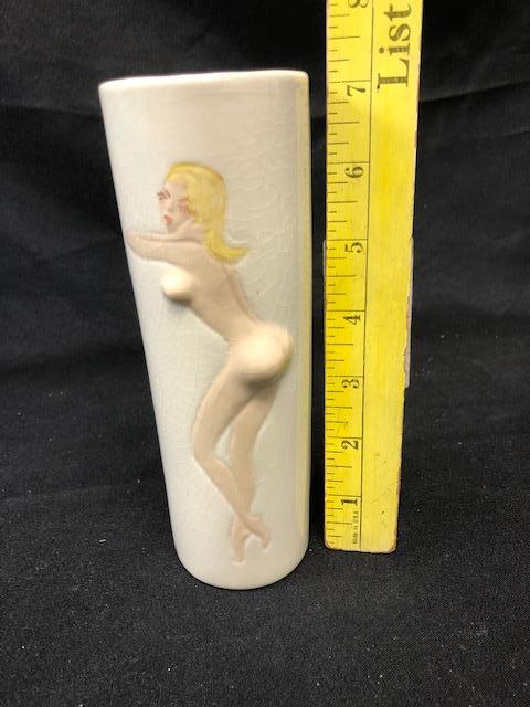 Vintage naked lady vase. Date on the bottom is 1959. Crazing all over. 7" tall.