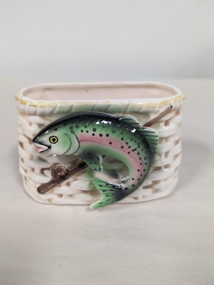 Vintage NAPCO Ceramic Fishing Creel Basket Planter