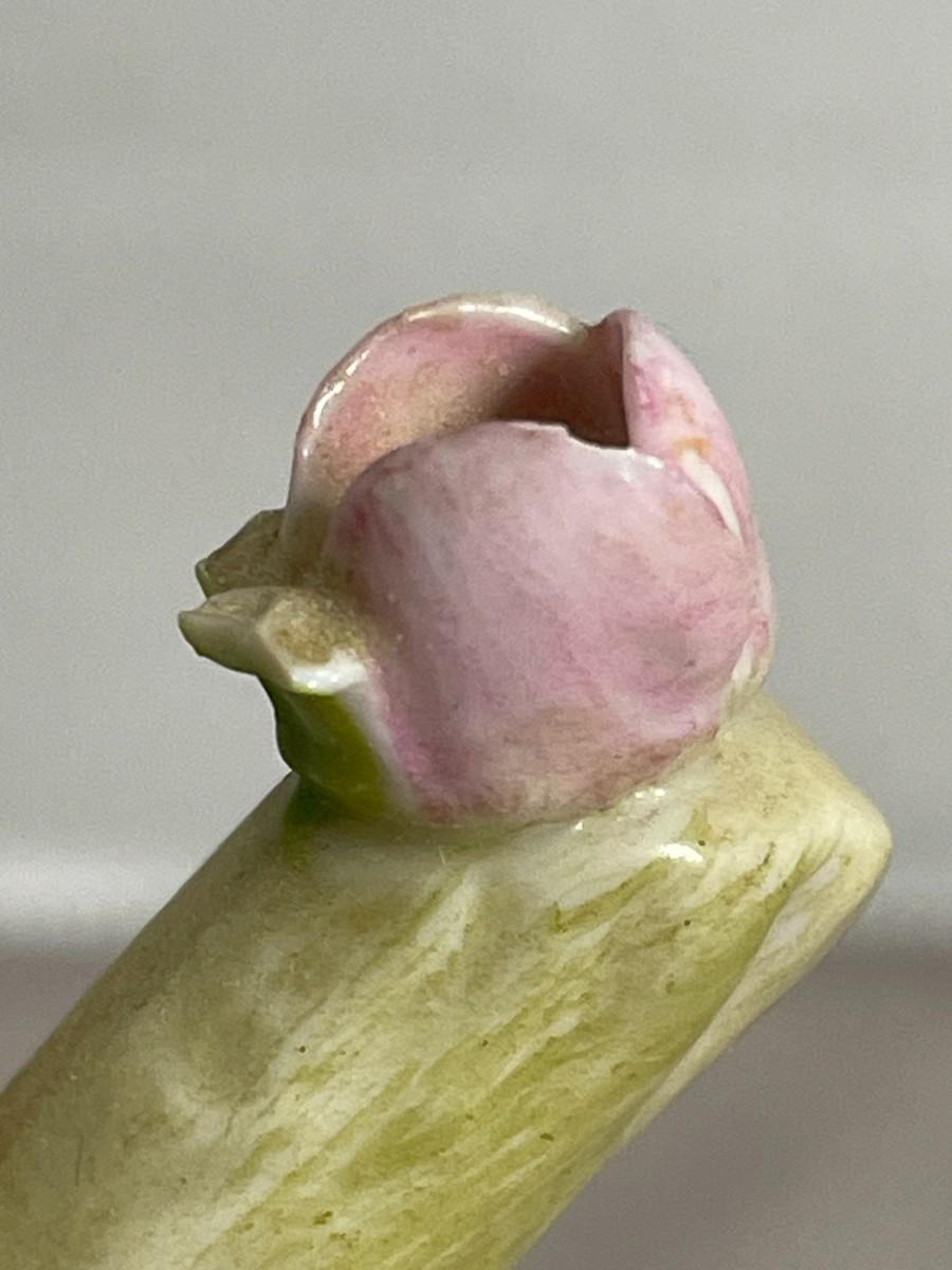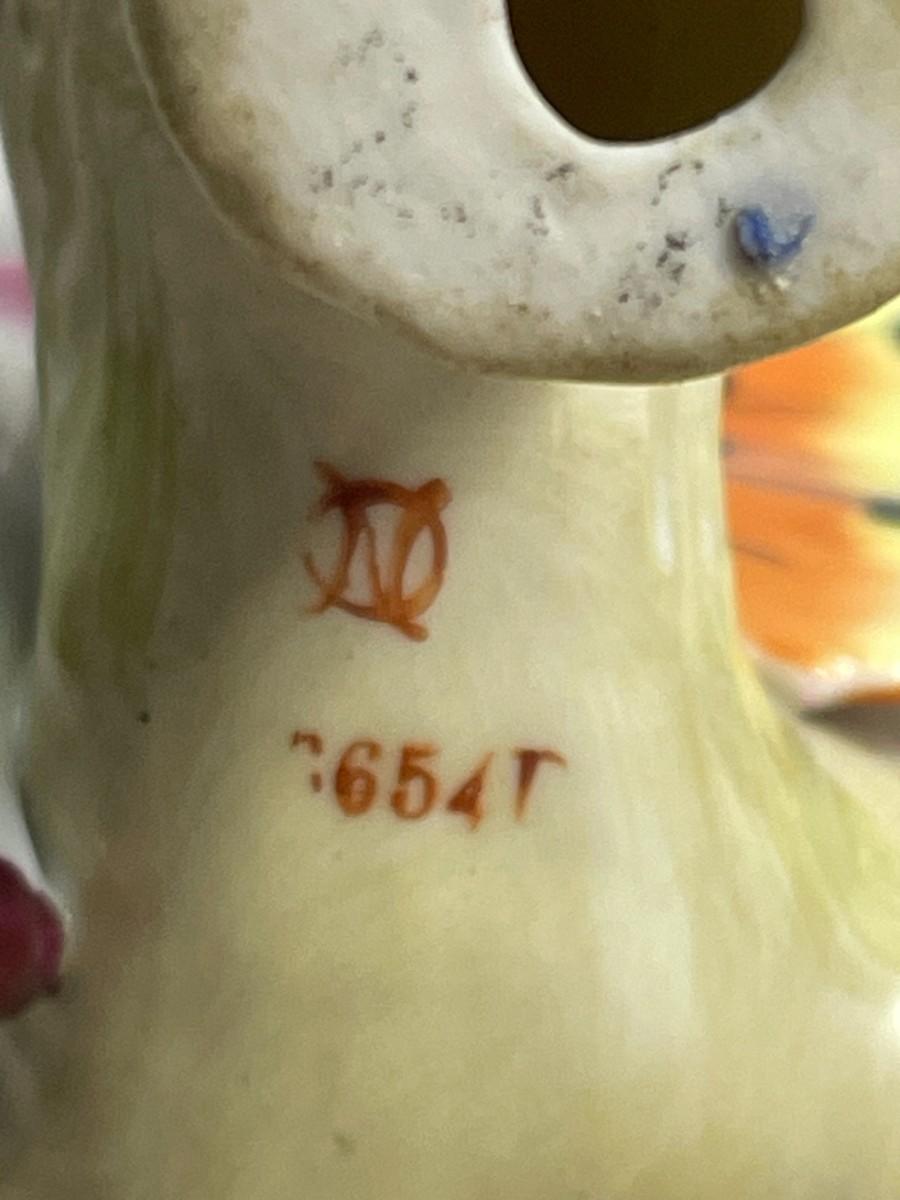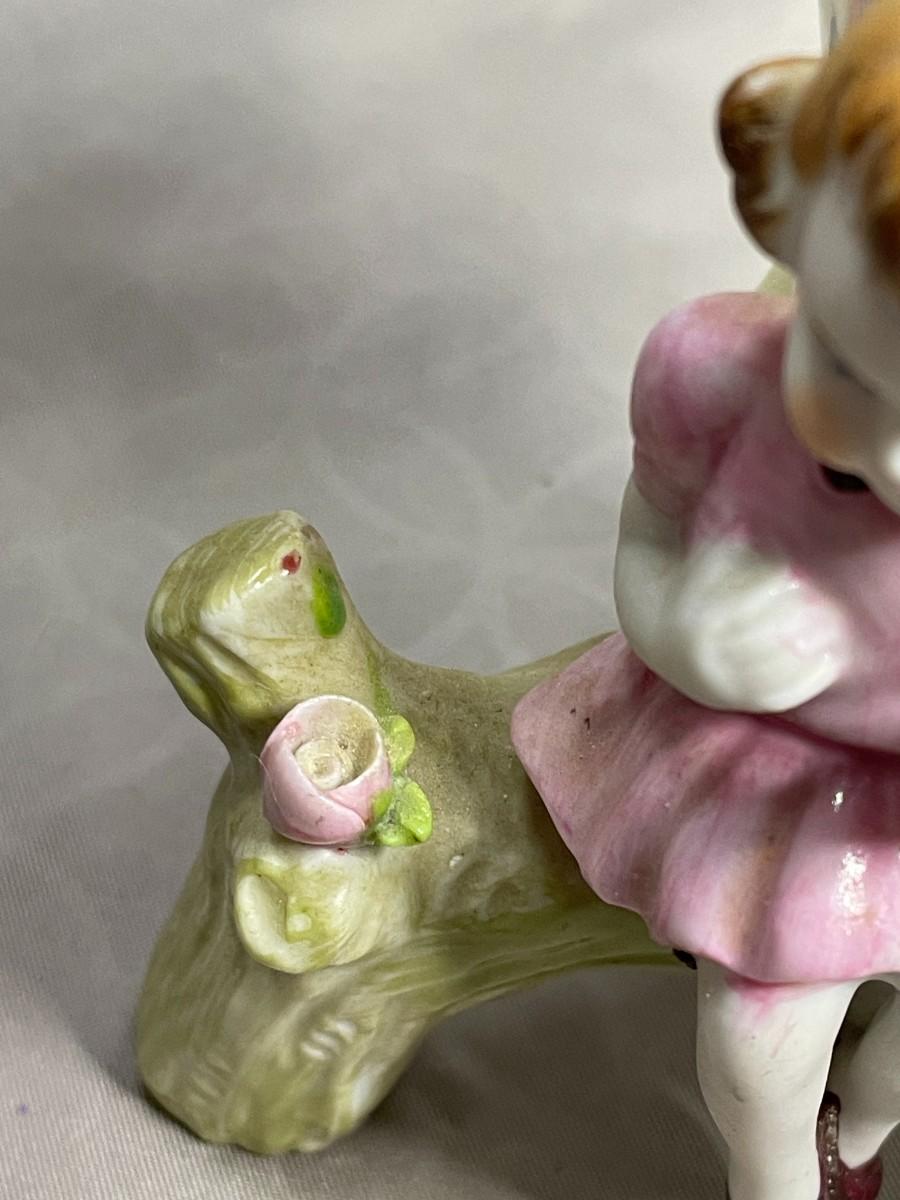 This figurine is in excellent condition except for the tip of one leaf that is chipped off - super hard to see and find. She stands about 5.25" tall and is adorable! I only found one other online and they identified her as Ardalt, but her backstamp doesn't match that.
