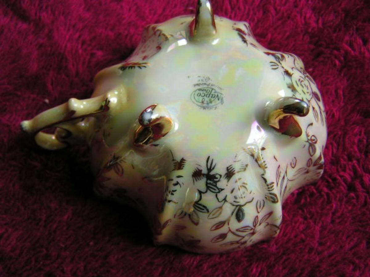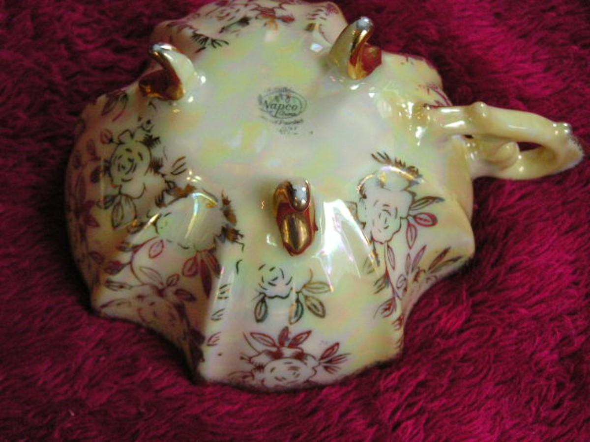 Vintage Napco of Japan Lusterware porcelain 3-footed teacup and saucer