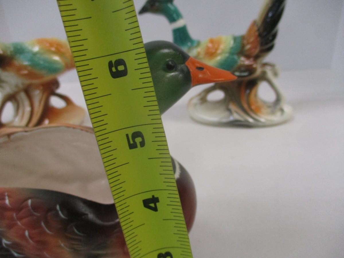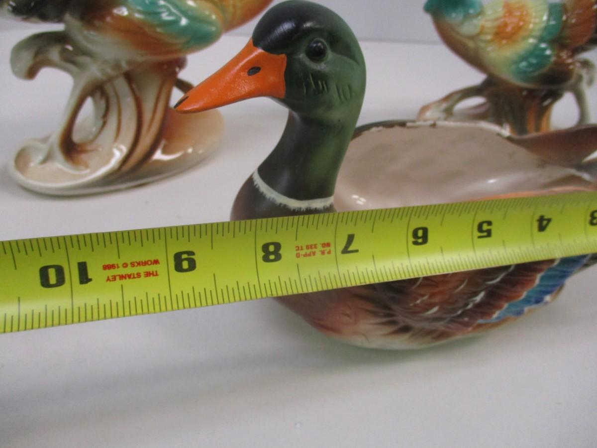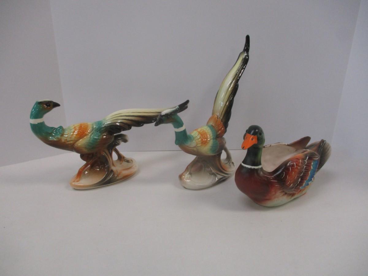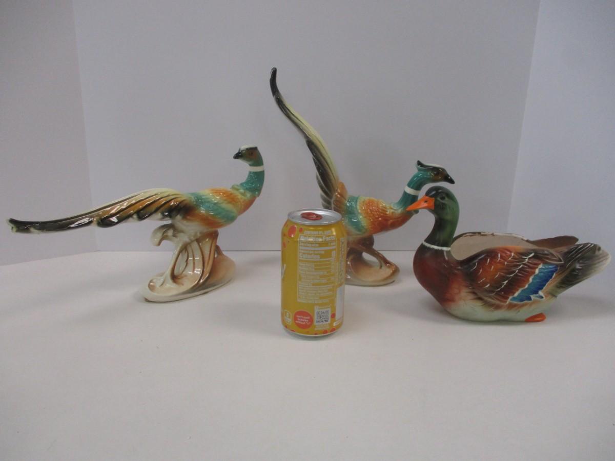Vintage Napcoware Mallard Duck Planter & Mid Century Royal Copley Pottery Pheasant Statues 1950's