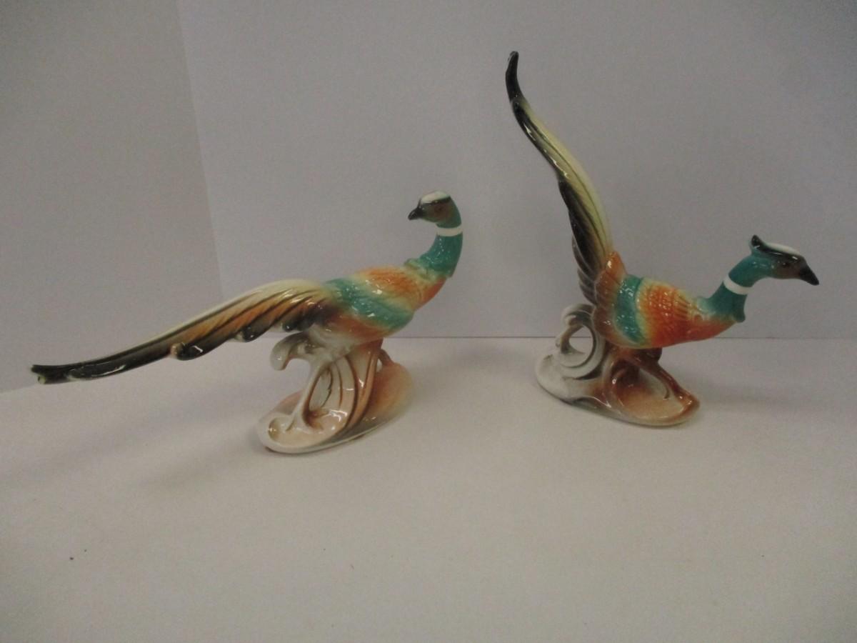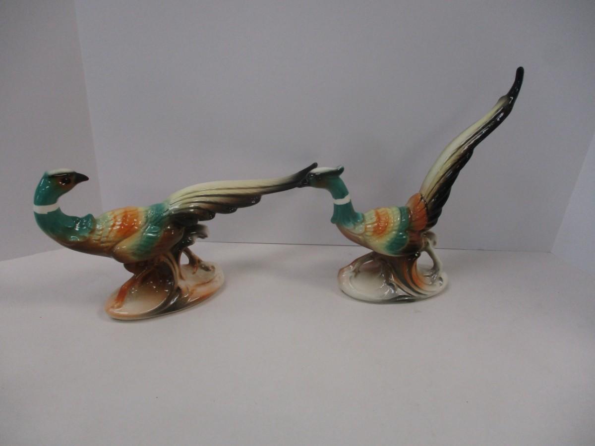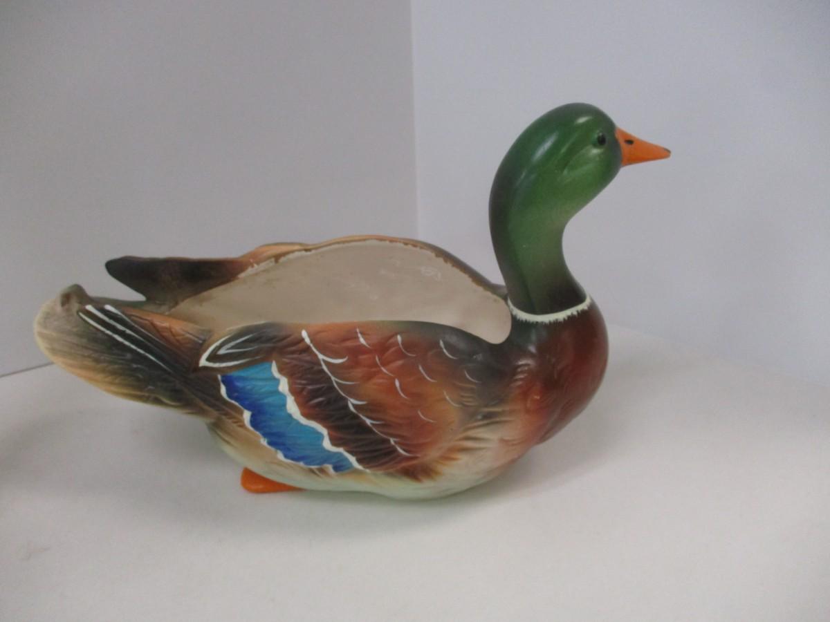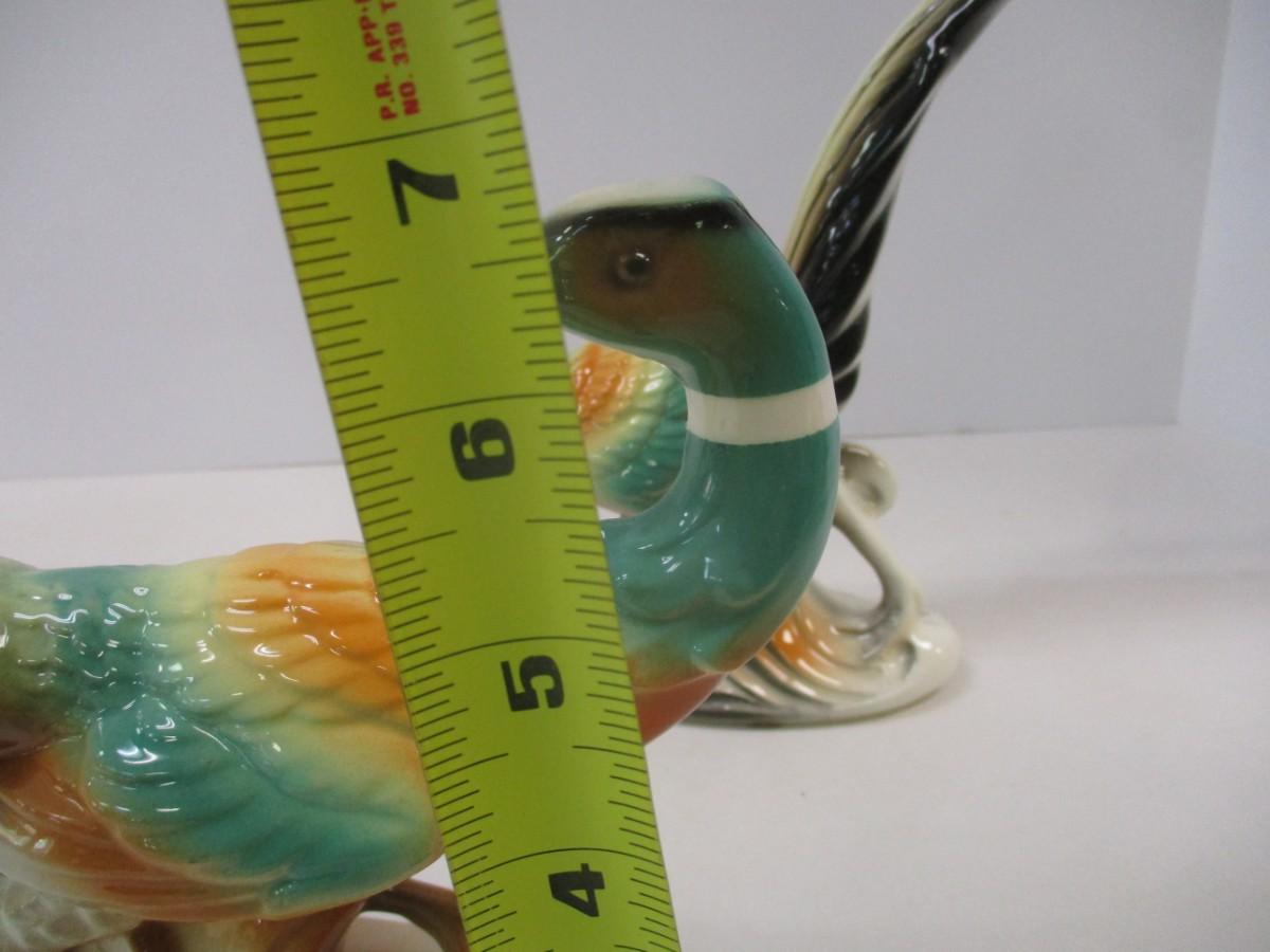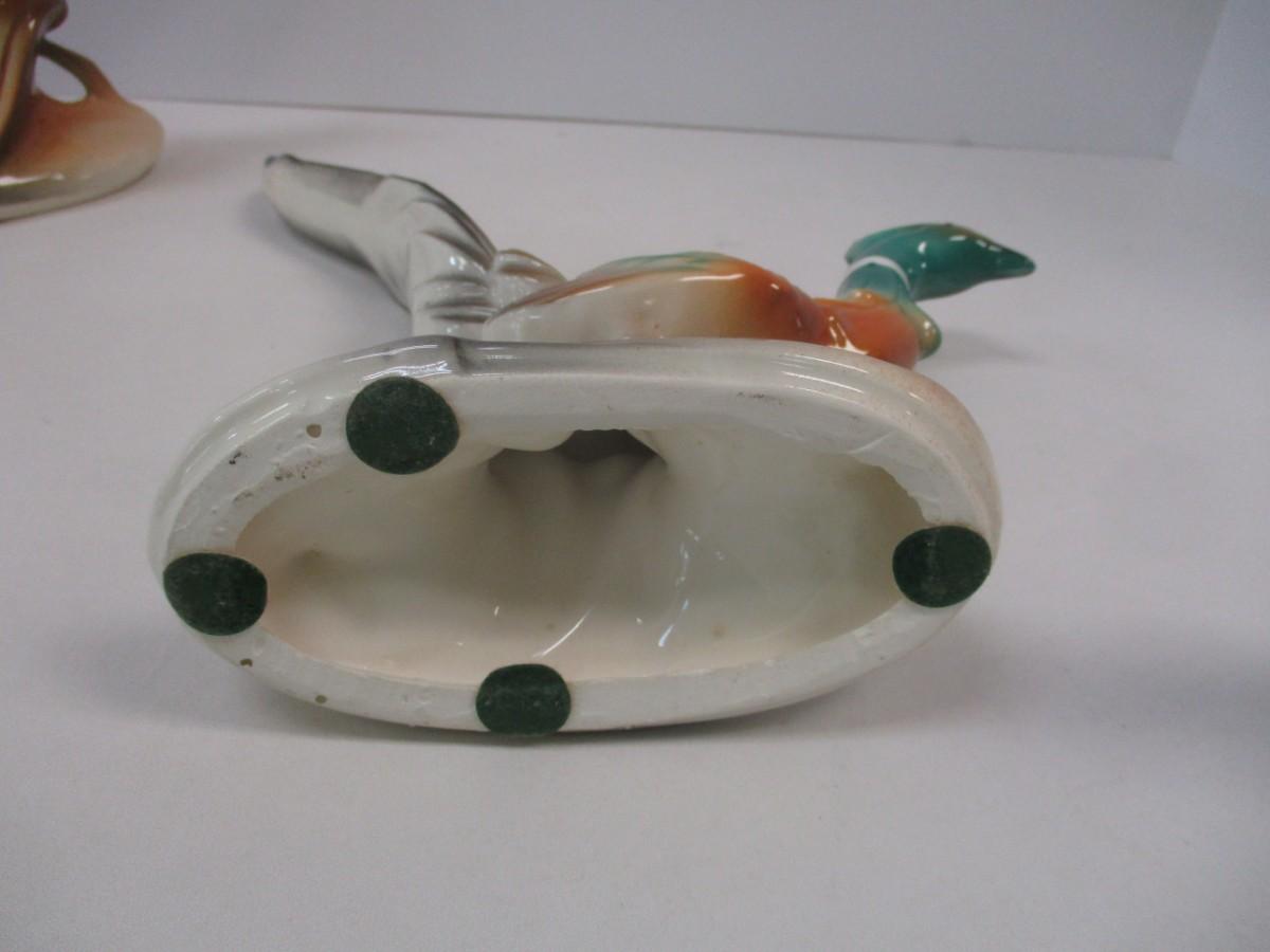 Vintage Napcoware Mallard Duck Planter & Mid Century Royal Copley Pottery Pheasant Statues 1950's