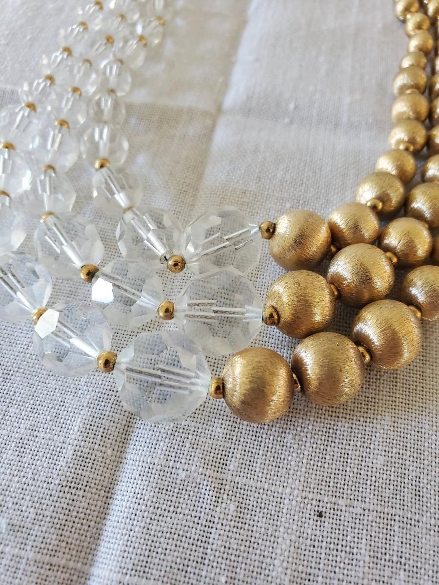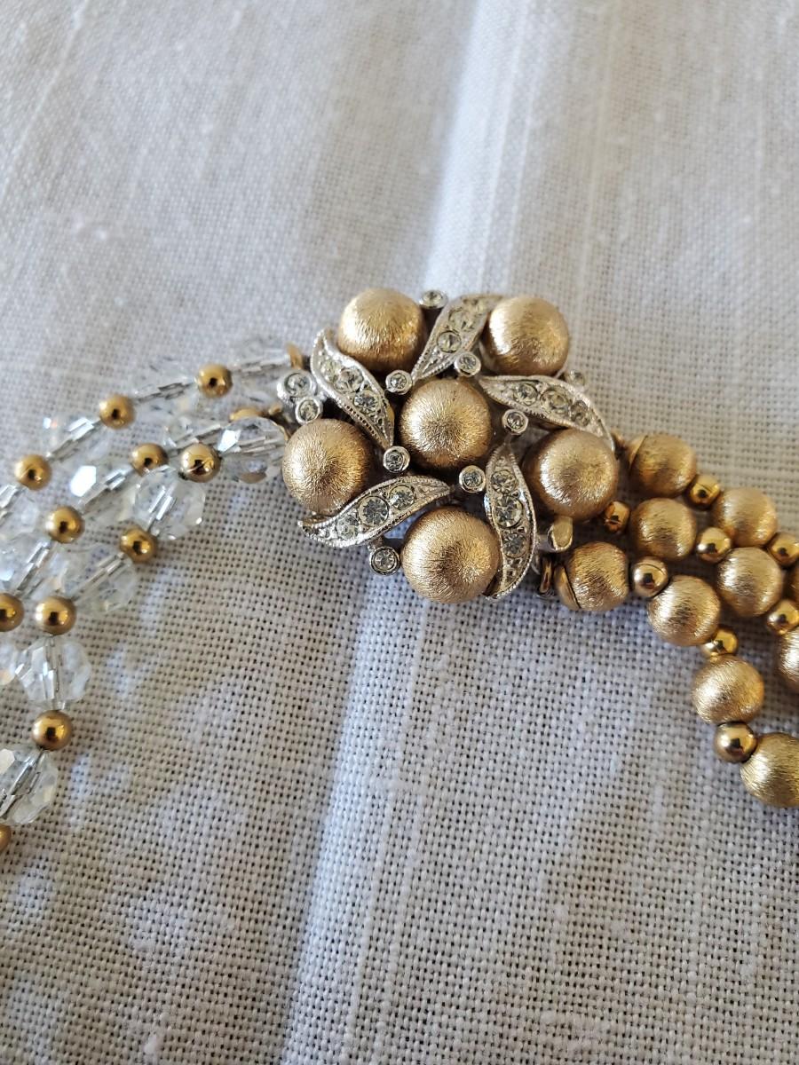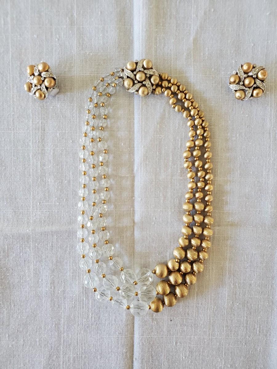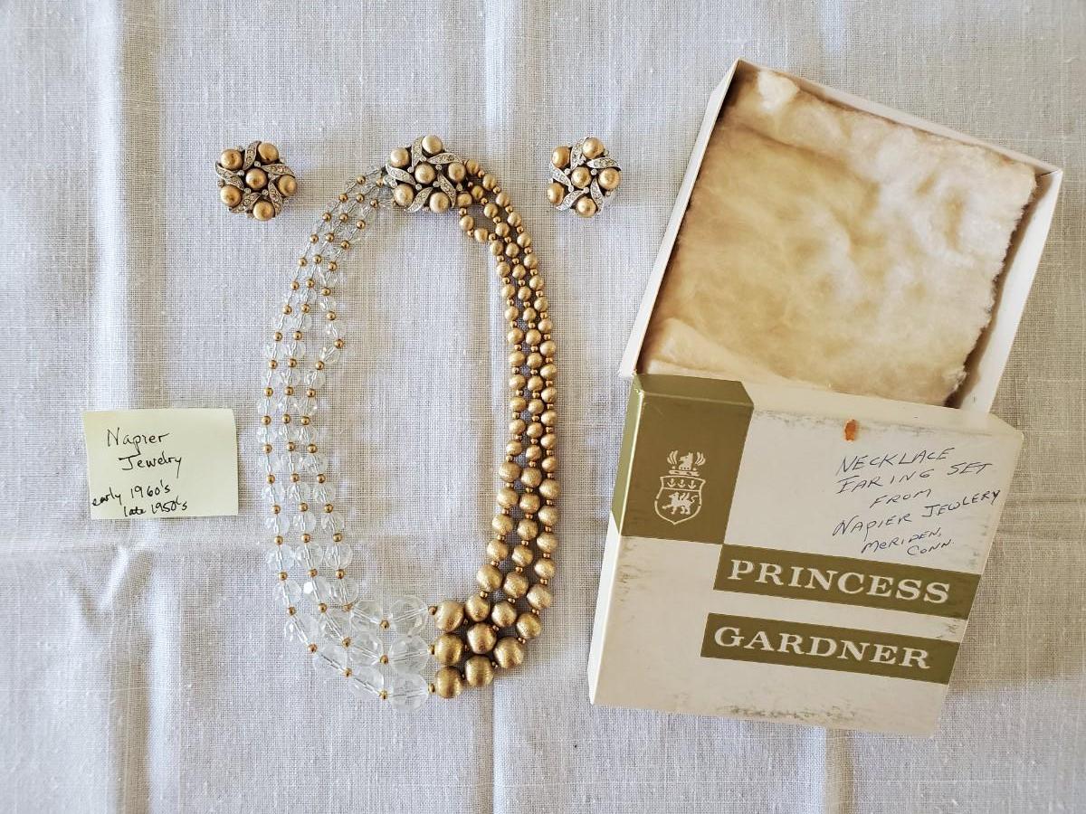 Vintage Napier Gold-Tone and Rhinestone Crystal Necklace and Earrings Set