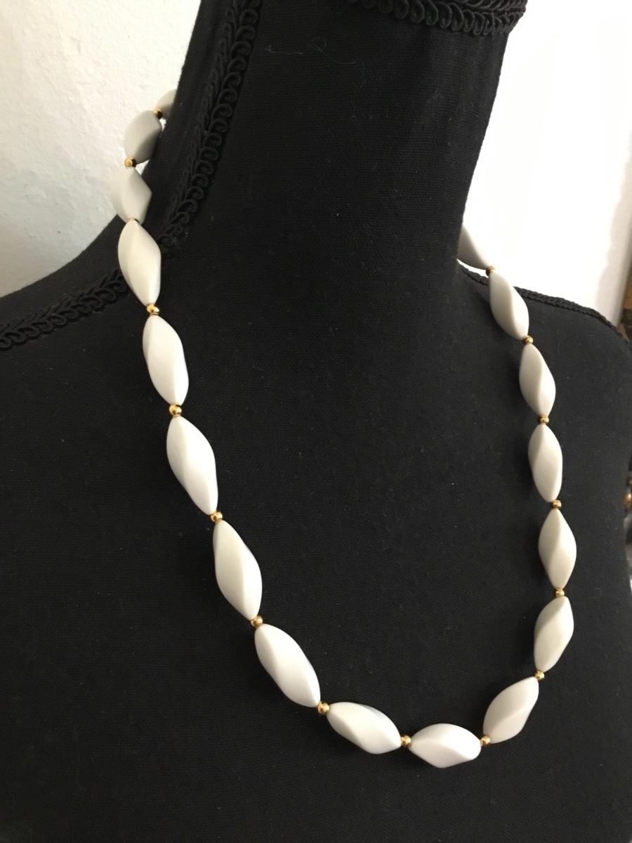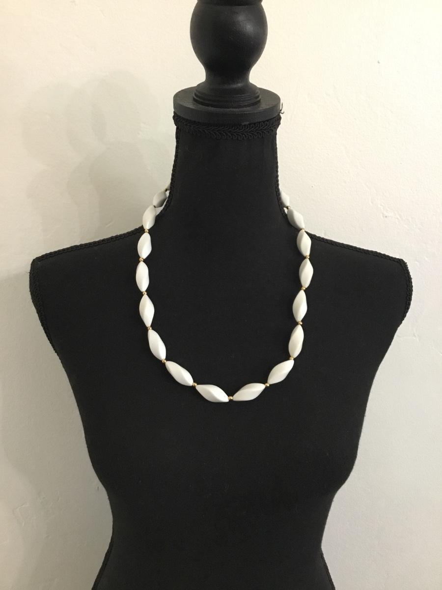 Vintage Napier white beaded gold tone, necklace