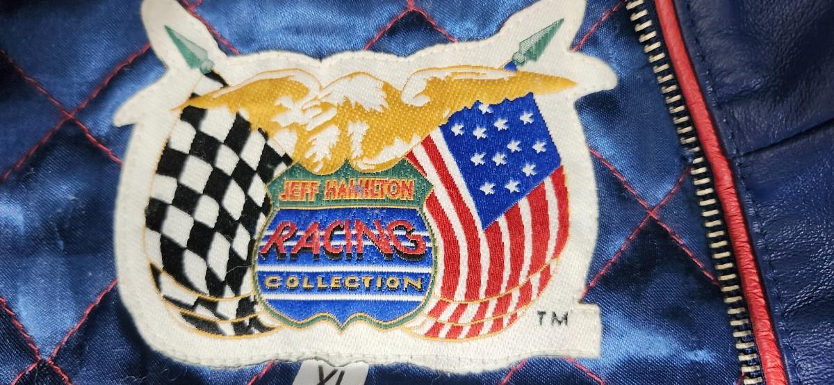 Vintage Nascar Jeff Hamilton Leather Jacket Mens XL Blue Red Jeff Gordon Dupont