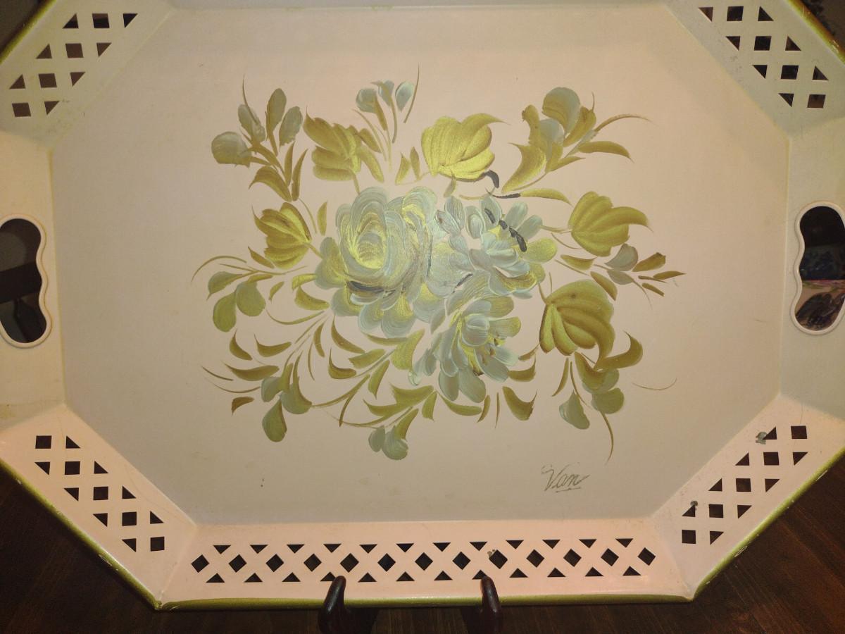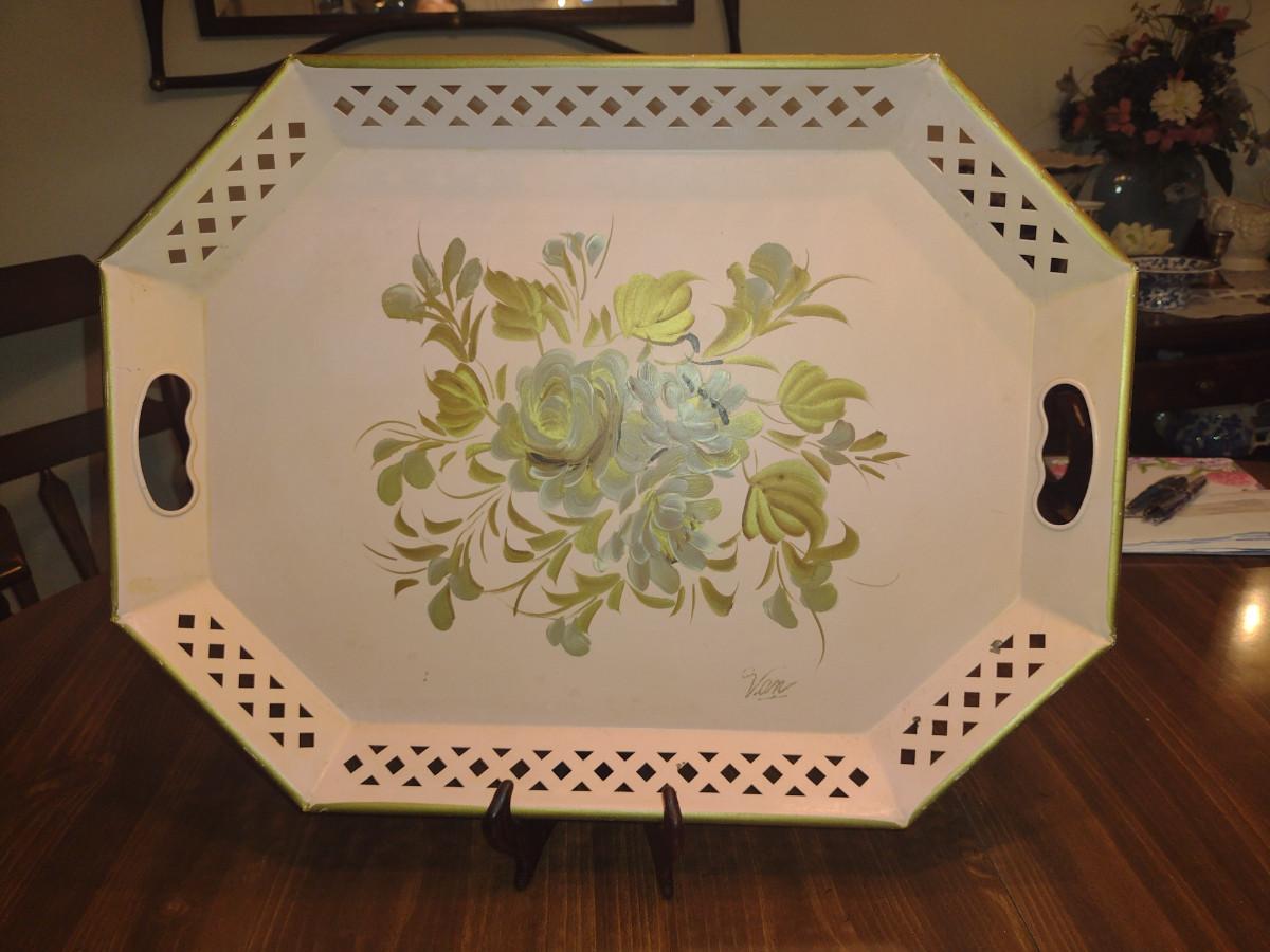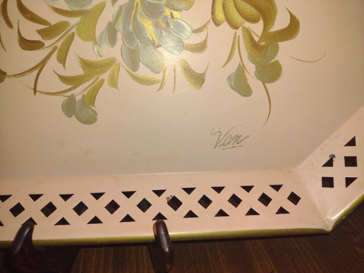 Vintage Nashco Hand Painted Serving Tray- Signed 'Van'- Approx 20" x 15"