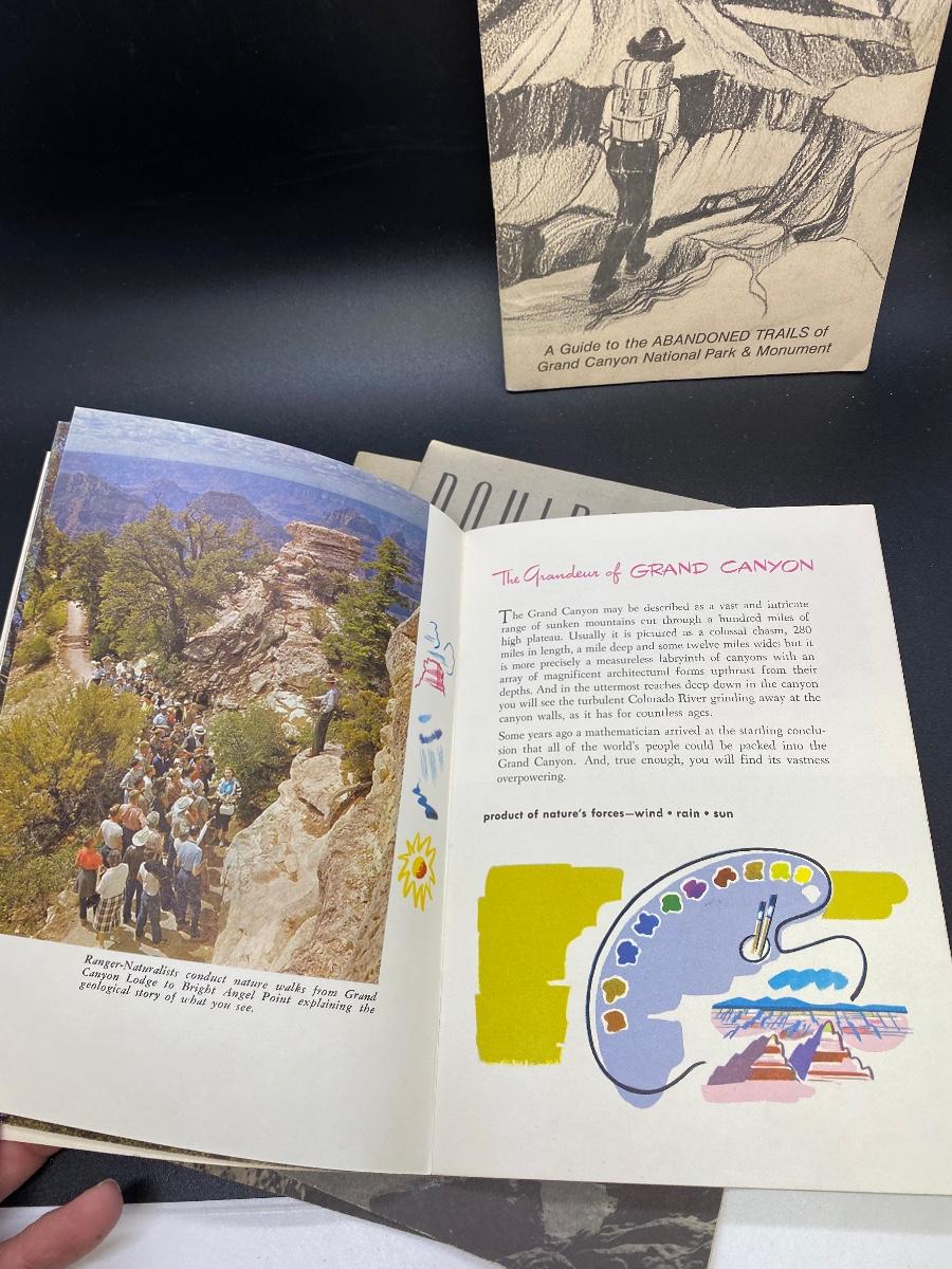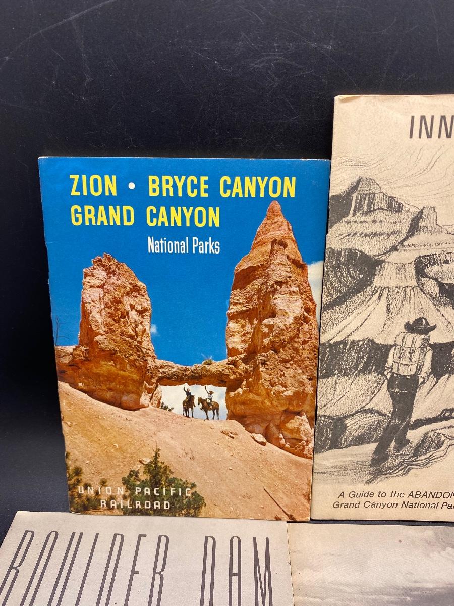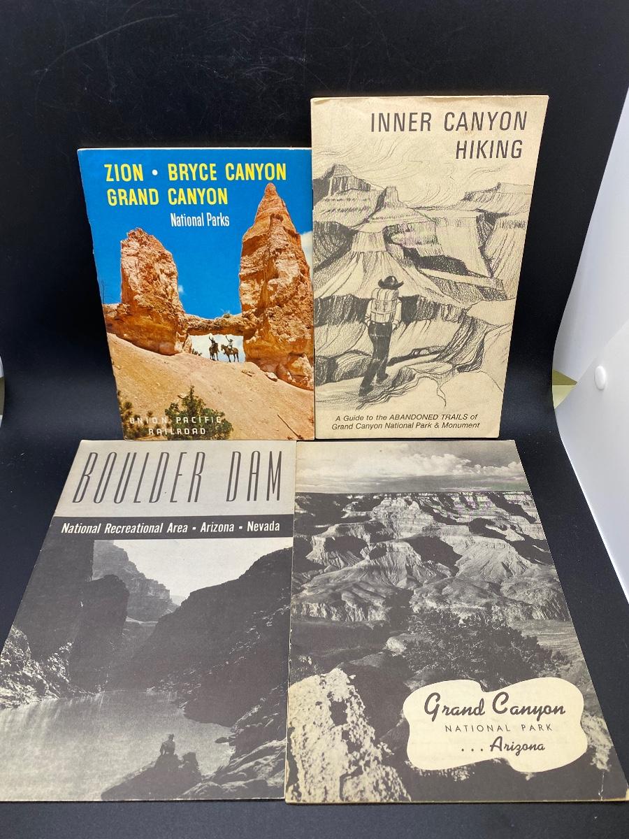 Vintage lot of 4 national park guide books. Includes Zion, Bryce Canyon, Grand Canyon, Boulder Dam and Hiking guide. Info, photos, and maps. Good vintage conditions.