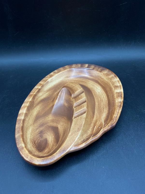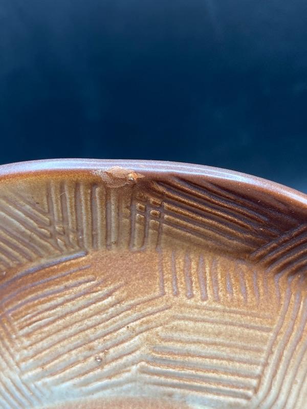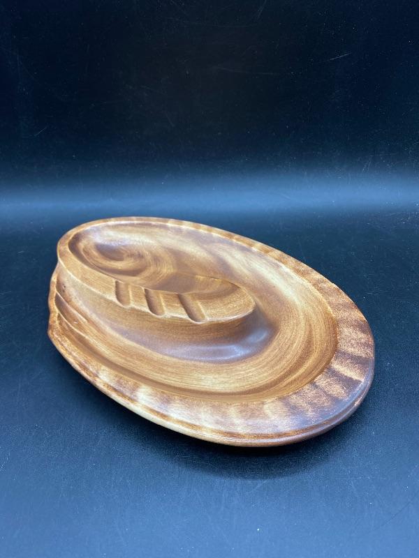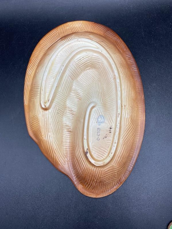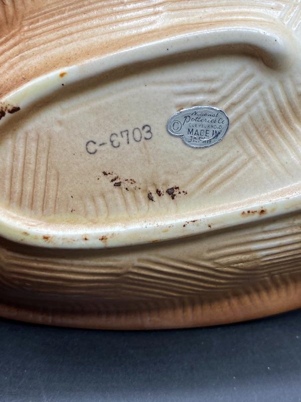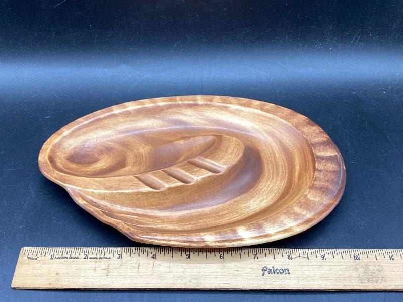 Vintage National Potteries CO swirl ashtray. Great vintage condition. Brown semi matte finish. No chips, small scuff in edge. Measures about 10"x7". Has original sticker on the bottom.