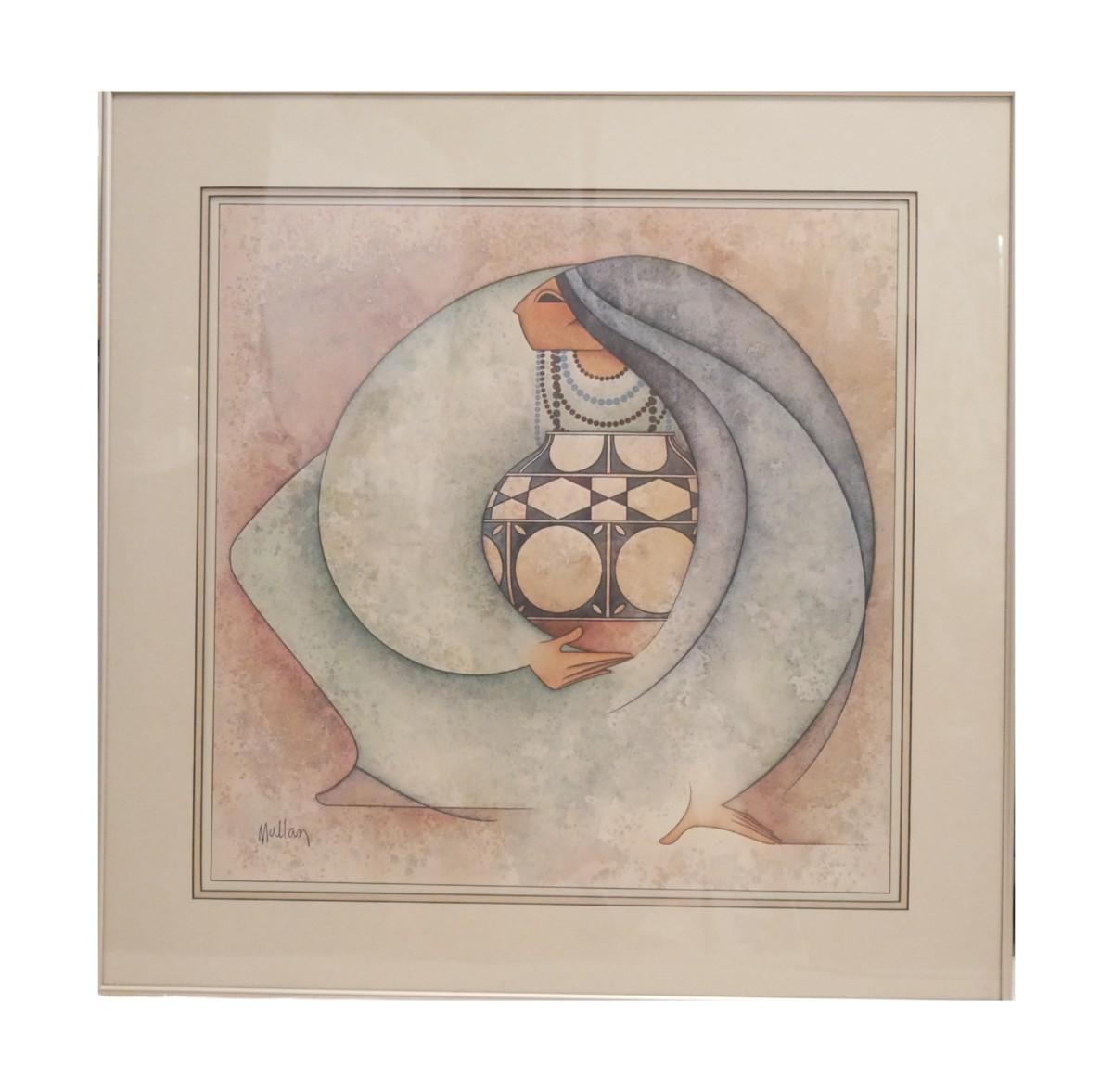 Vintage matted and framed Native American art print by GE Mullan. Art measures approximately 19" x 19", total frame measures 26" x 26" *For shipping, this lot will have a $30 boxing fee applied*