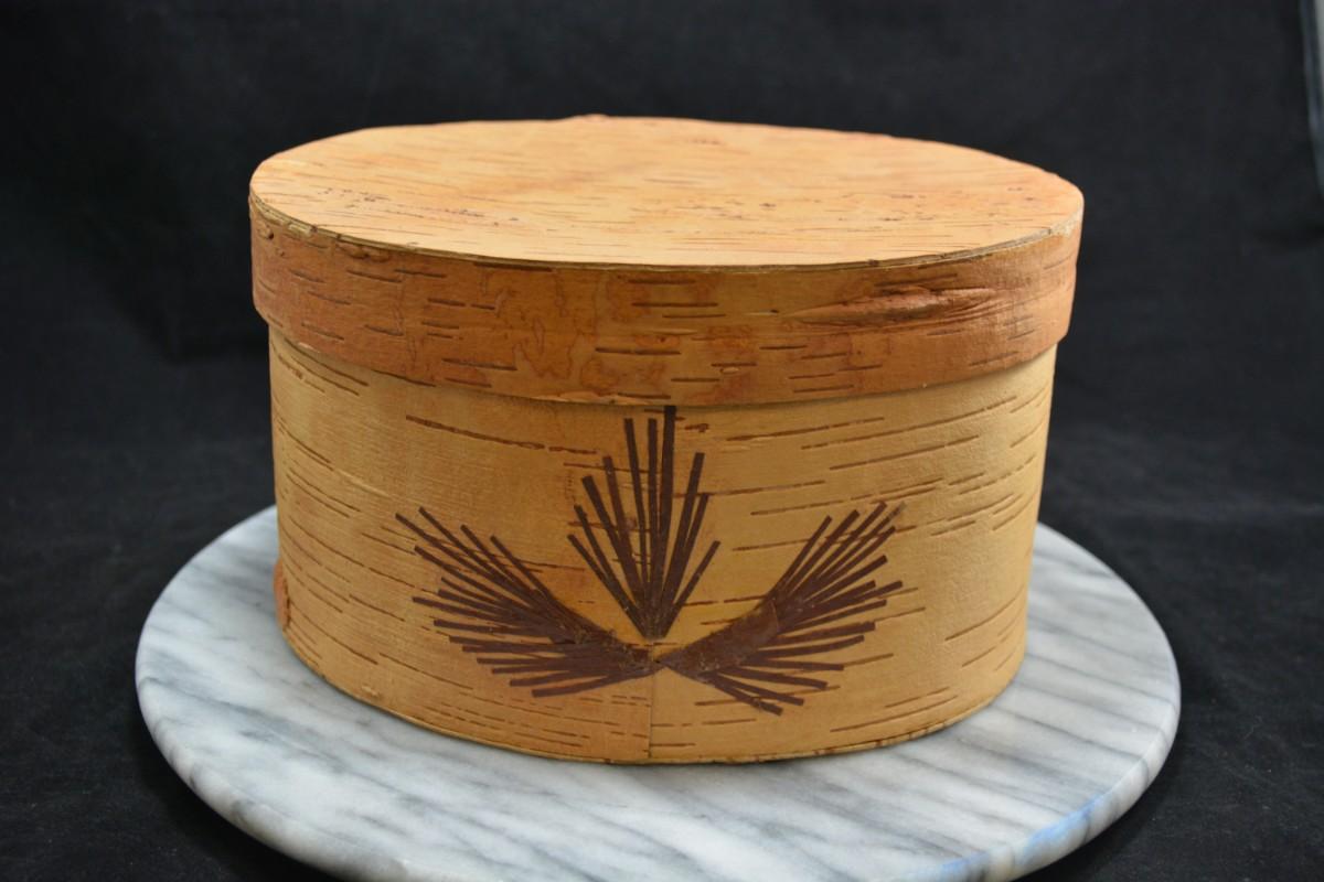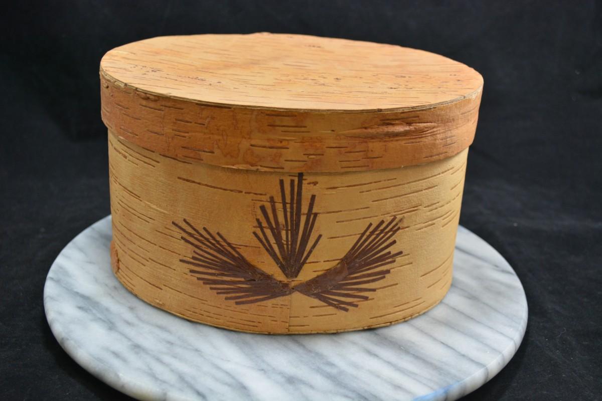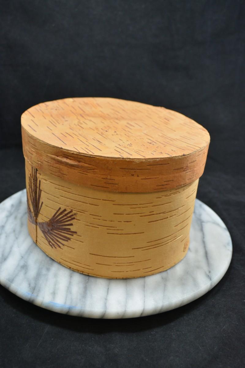 Vintage Native American Oval Birch Box w/ Lid 5”x7.5”x8.75”
