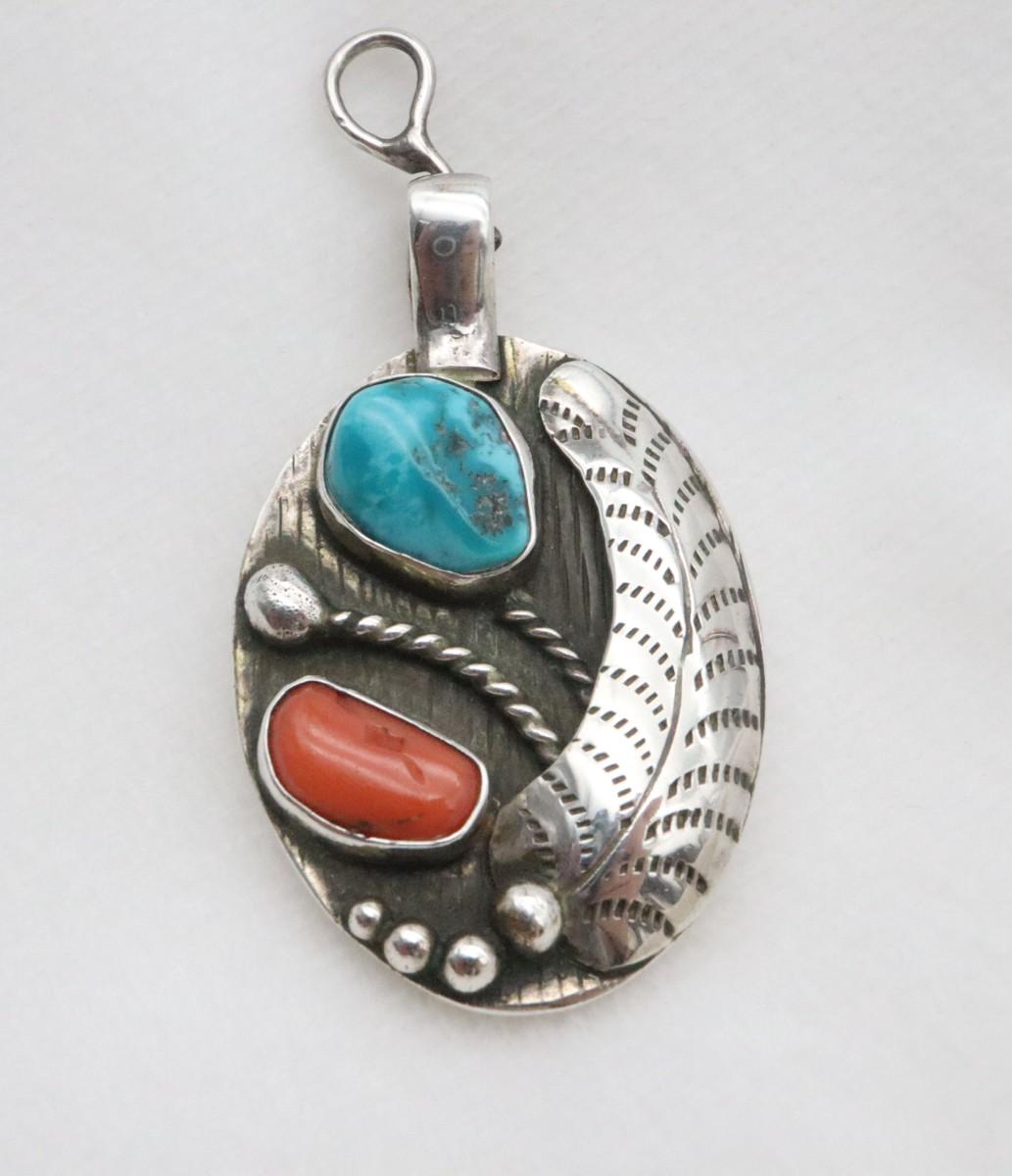Vintage Native American Sterling Silver 2-Sided Pendant