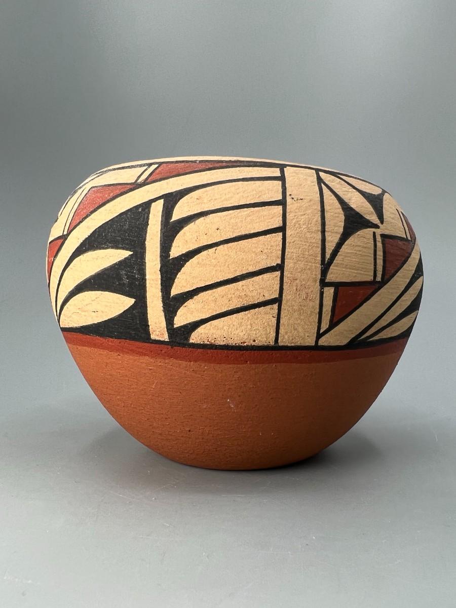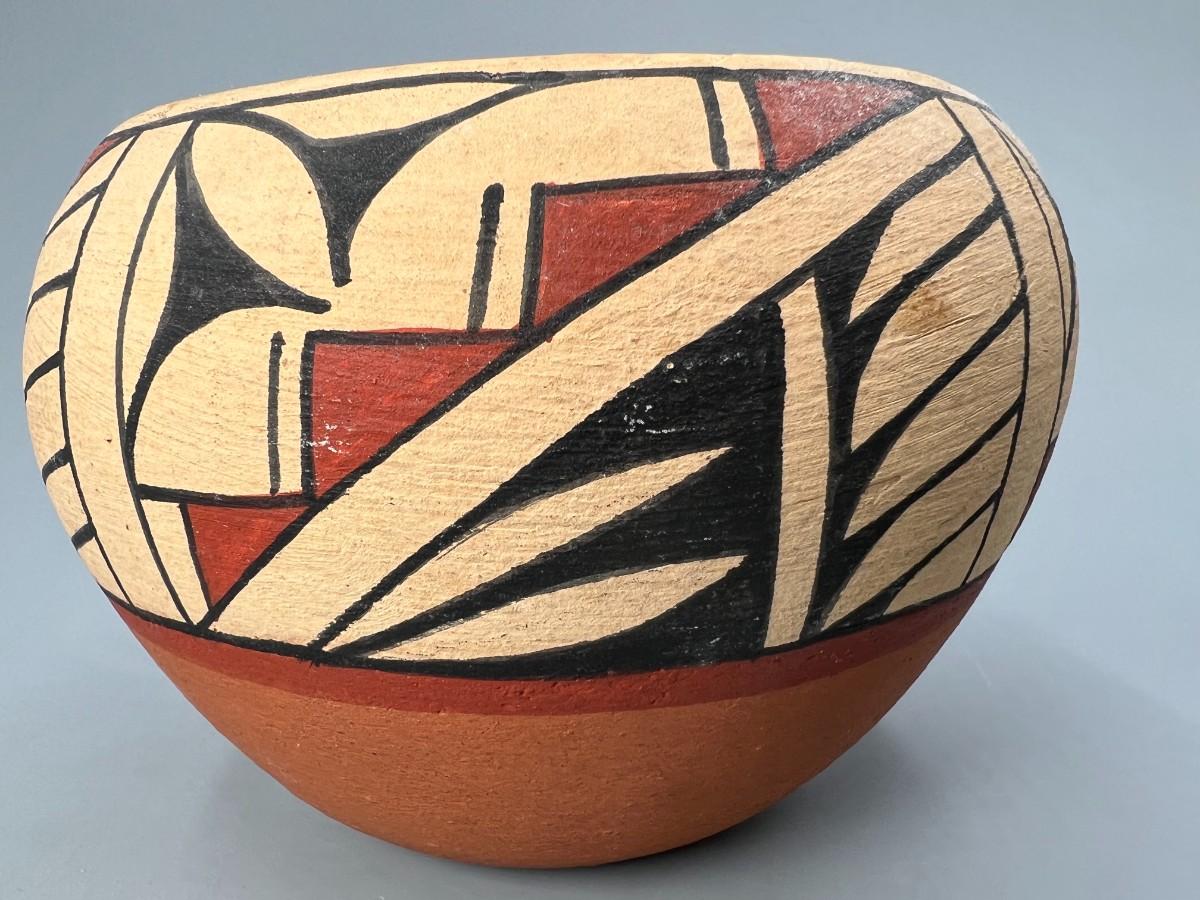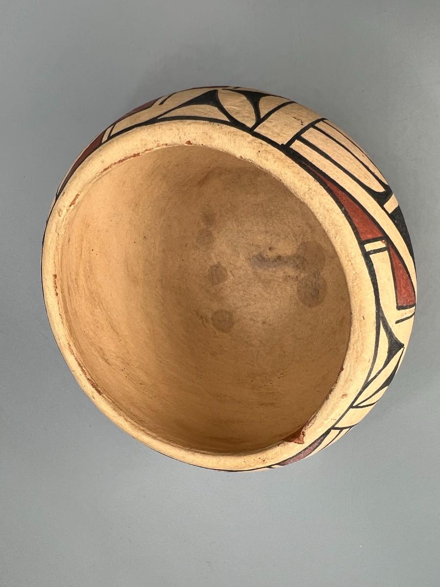 Vintage Native American Style Pueblo Hand Painted & Signed Folk Art Pottery Bowl