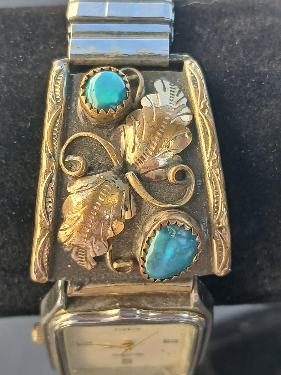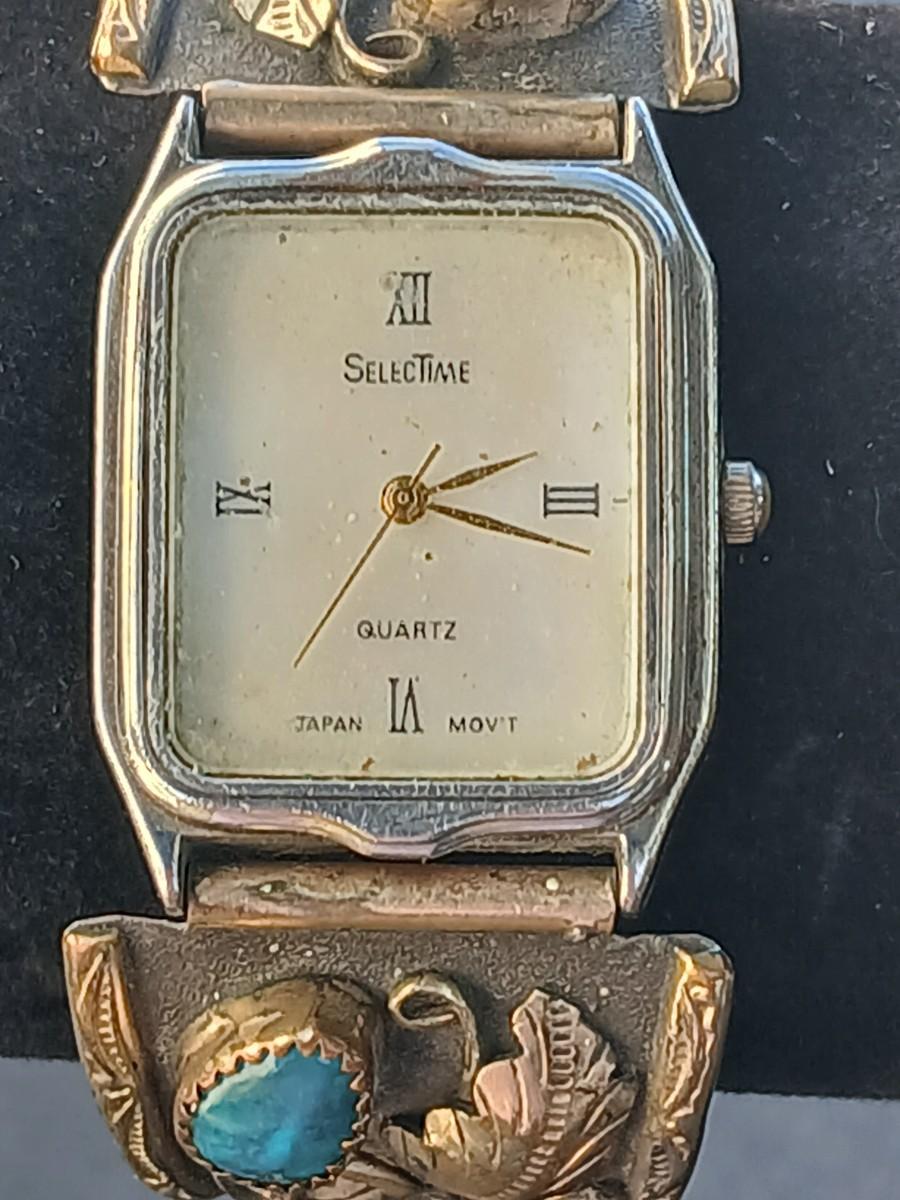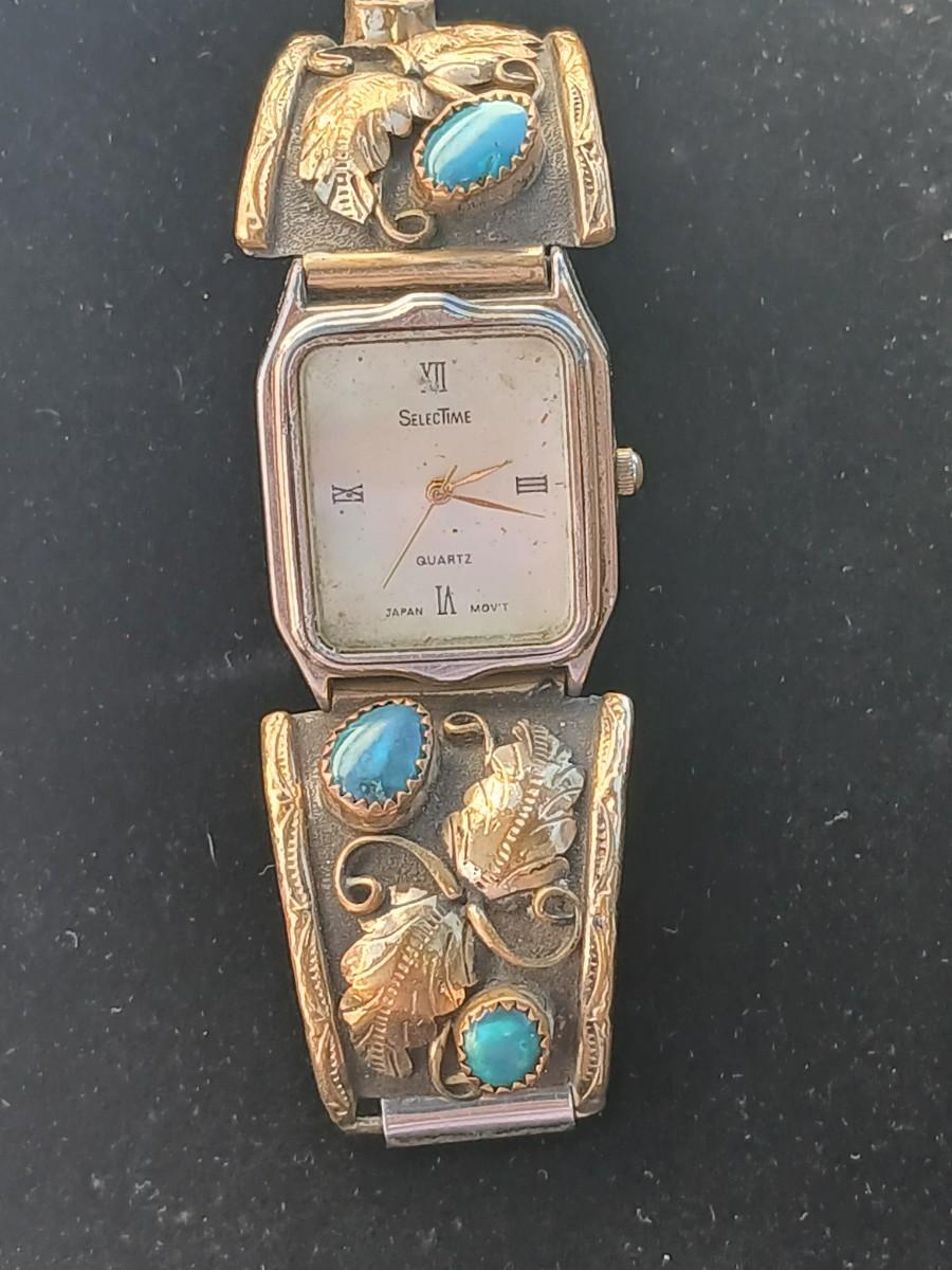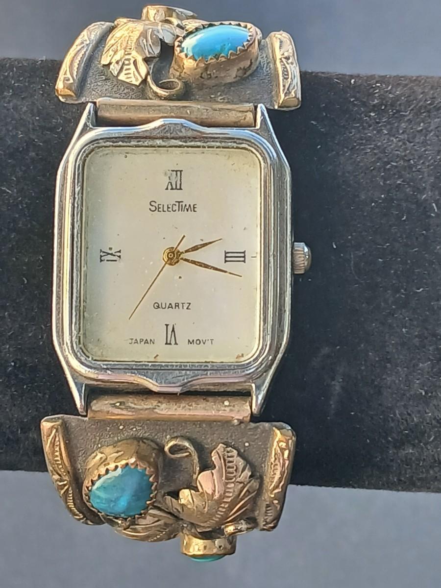 Vintage Native American Turquoise watch SelecTime Quartz marked 12KT G.F. 12 KT Gold filled