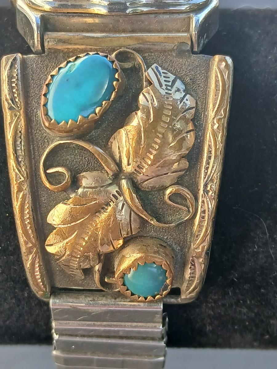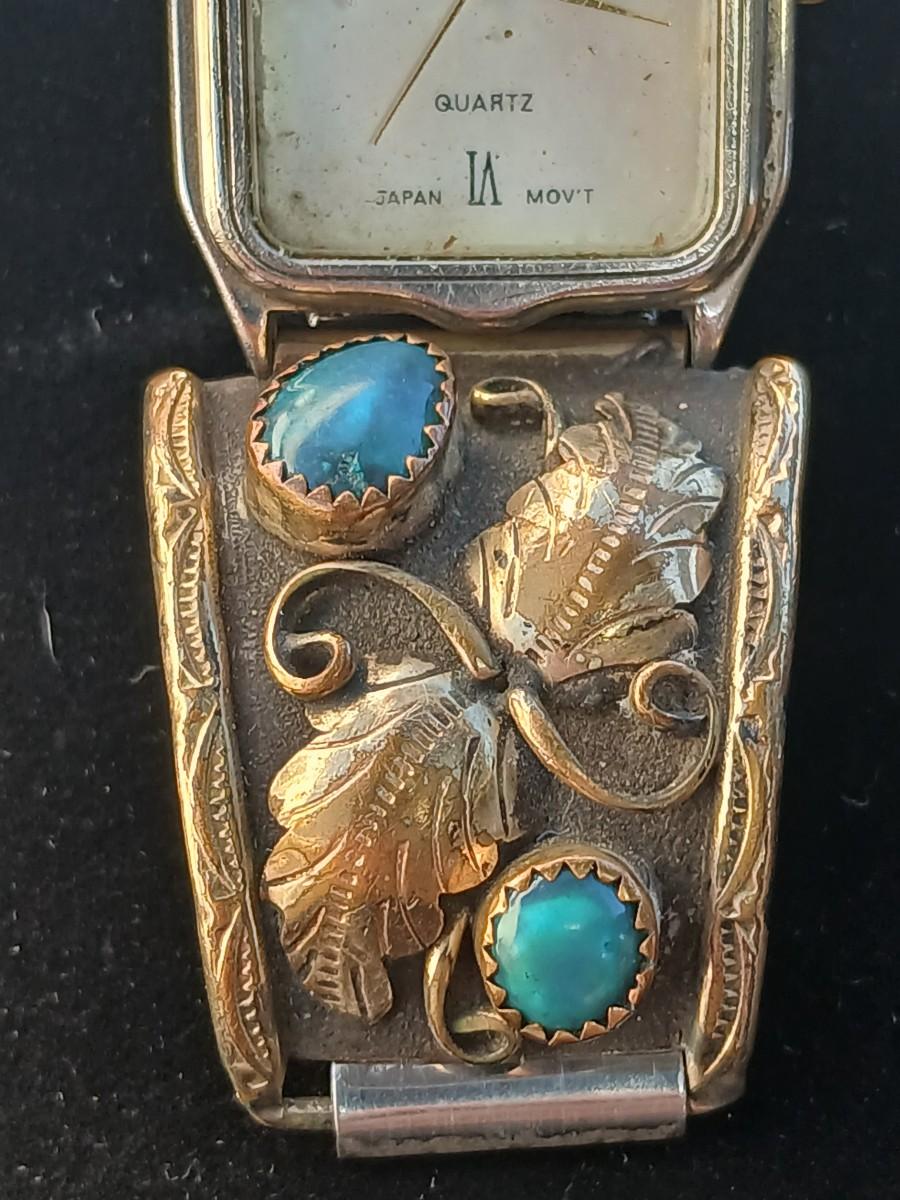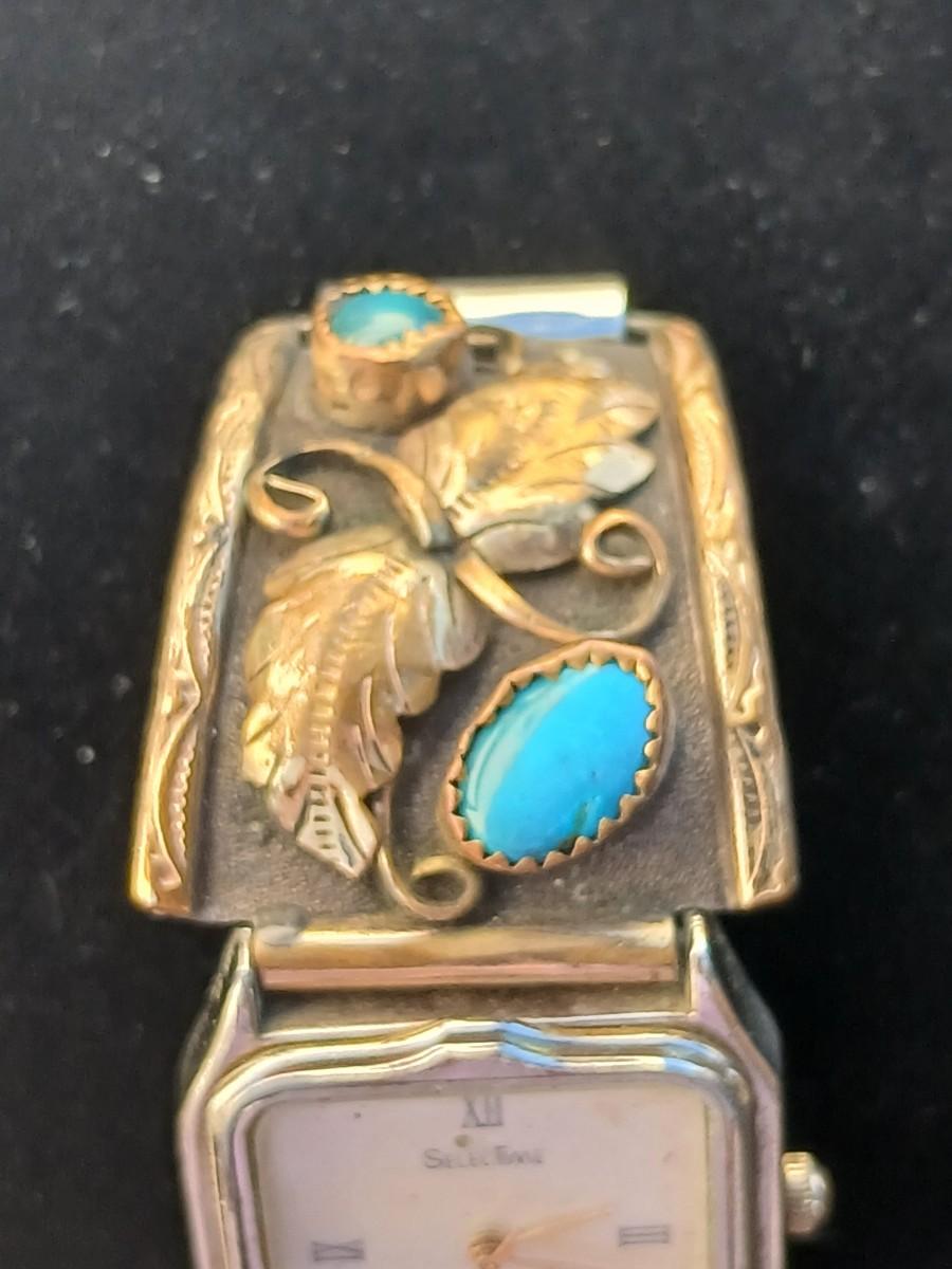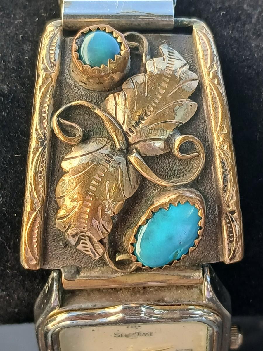 Vintage Native American Turquoise watch SelecTime Quartz marked 12KT G.F. 12 KT Gold filled
