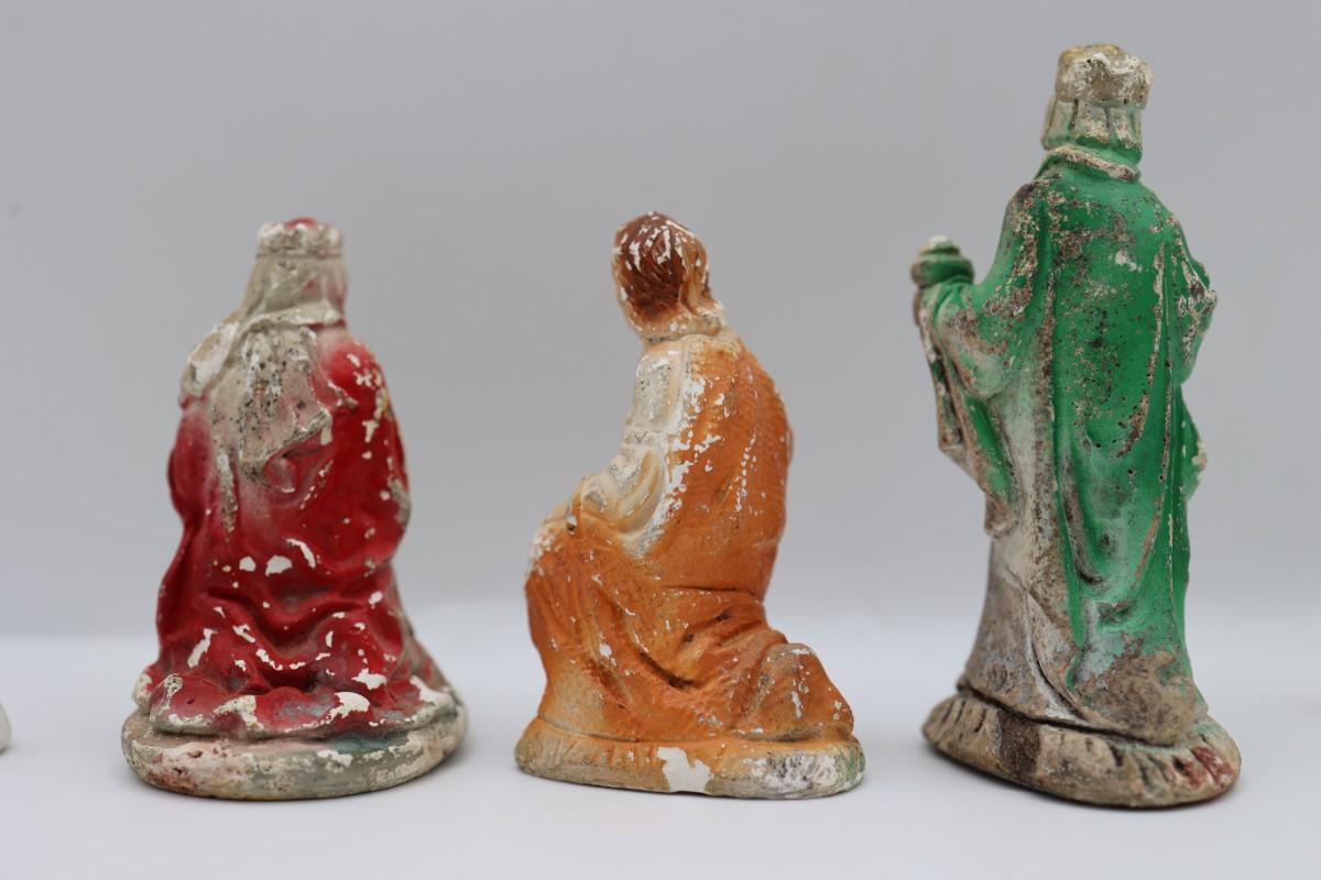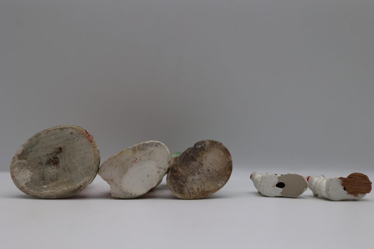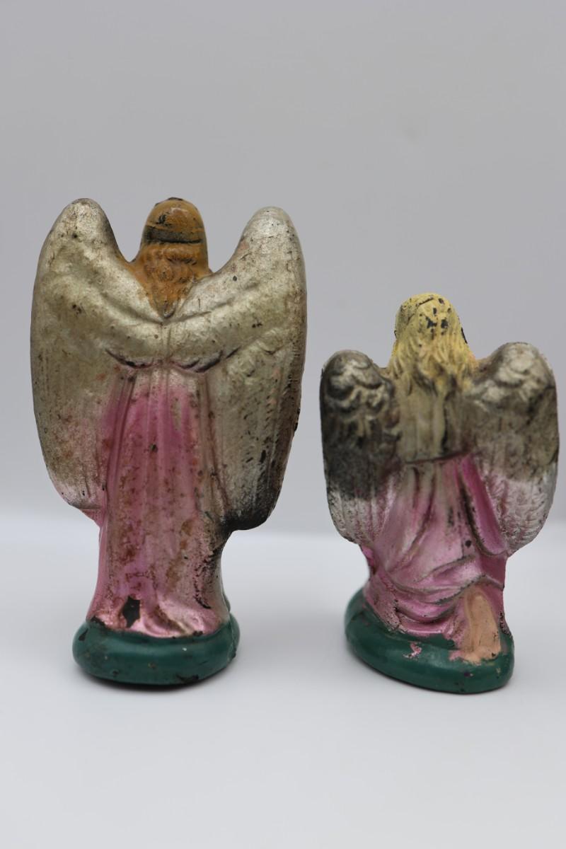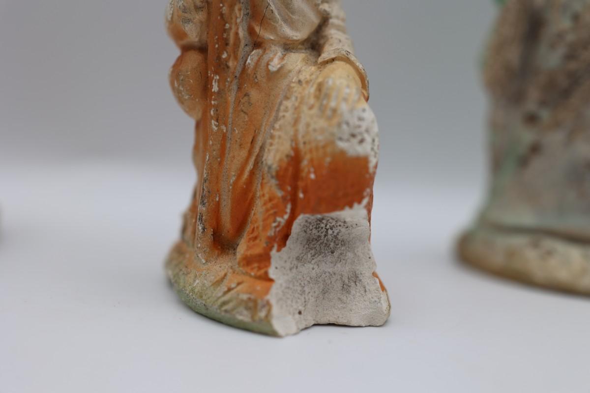 These are old and have natural wear. One figure is chipped on the bottom, see last picture.