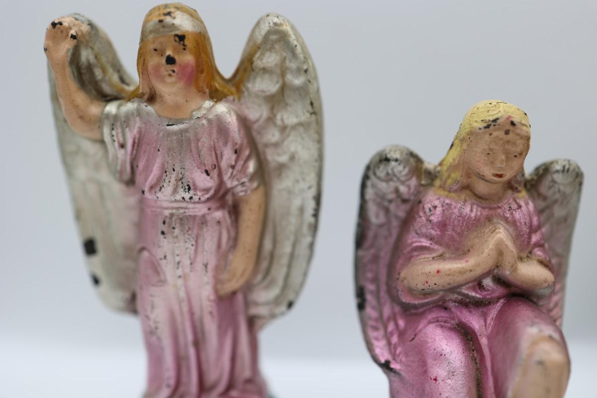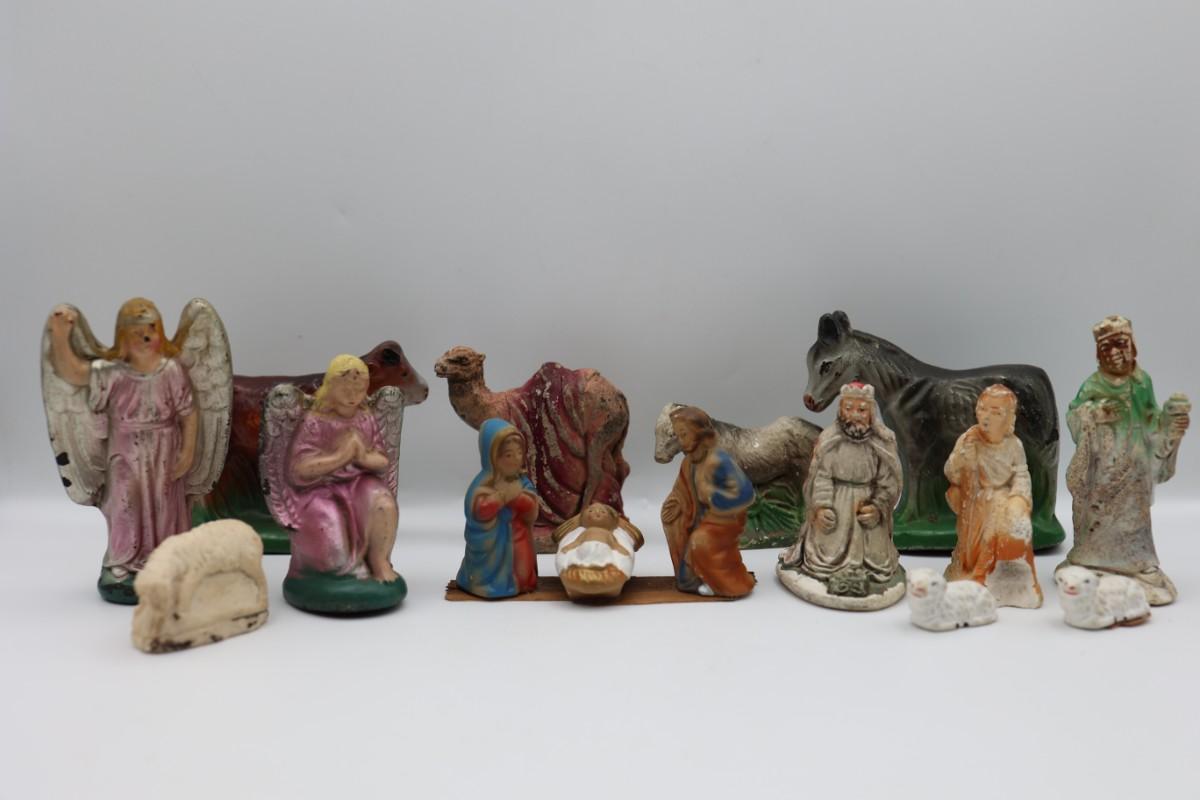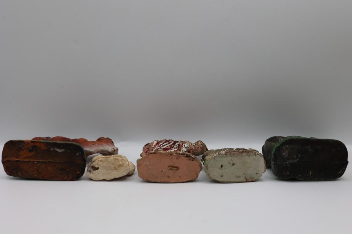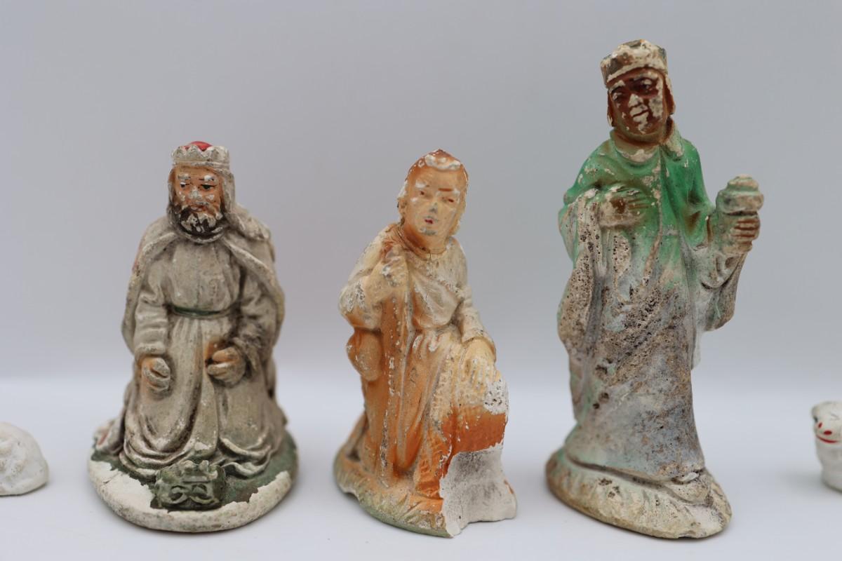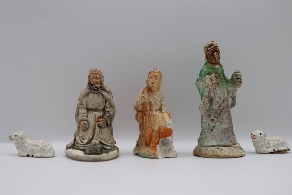 These are old and have natural wear. One figure is chipped on the bottom, see last picture.