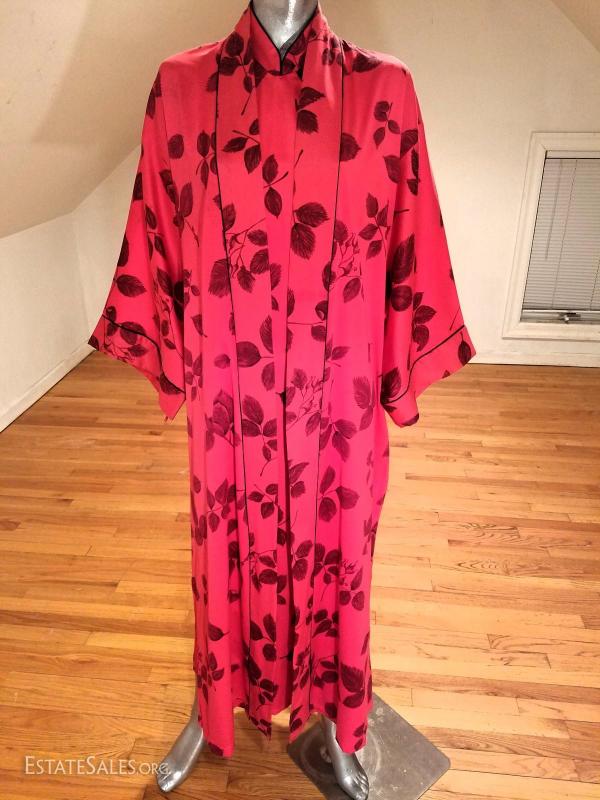 By famous Japanese designer Natori. This one is from the late 1970's early 1980's.All hand painted print of floral design. From an estate of a Diplomat in Kyoto, Japan. Natori was and still is very collectible.