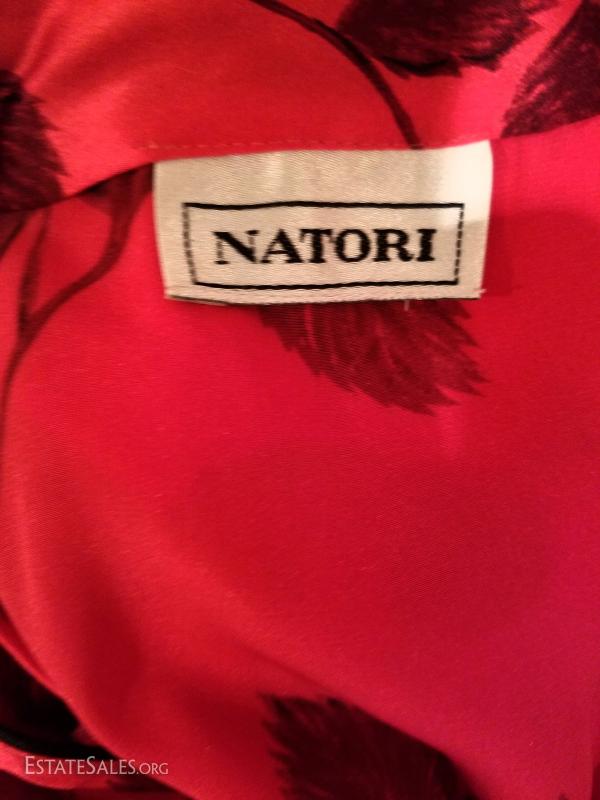 By famous Japanese designer Natori. This one is from the late 1970's early 1980's.All hand painted print of floral design. From an estate of a Diplomat in Kyoto, Japan. Natori was and still is very collectible.