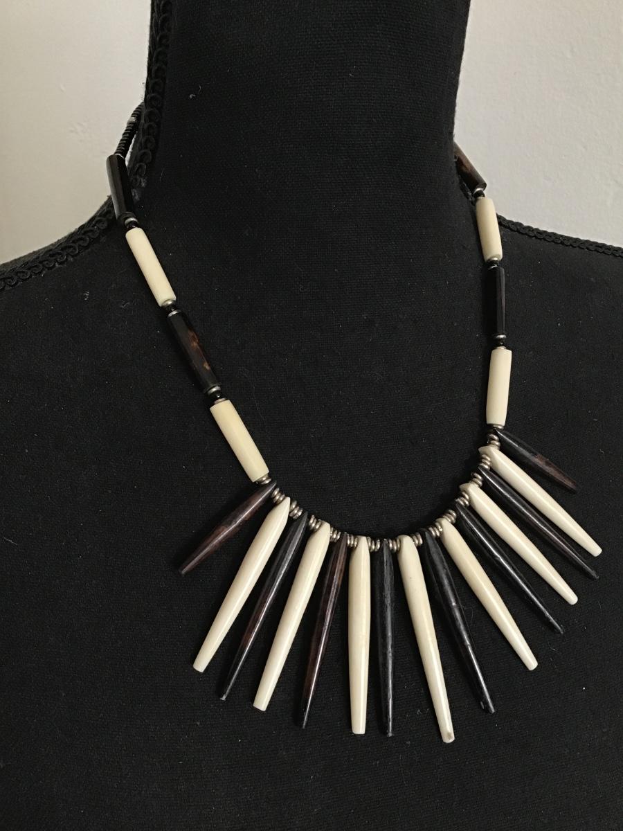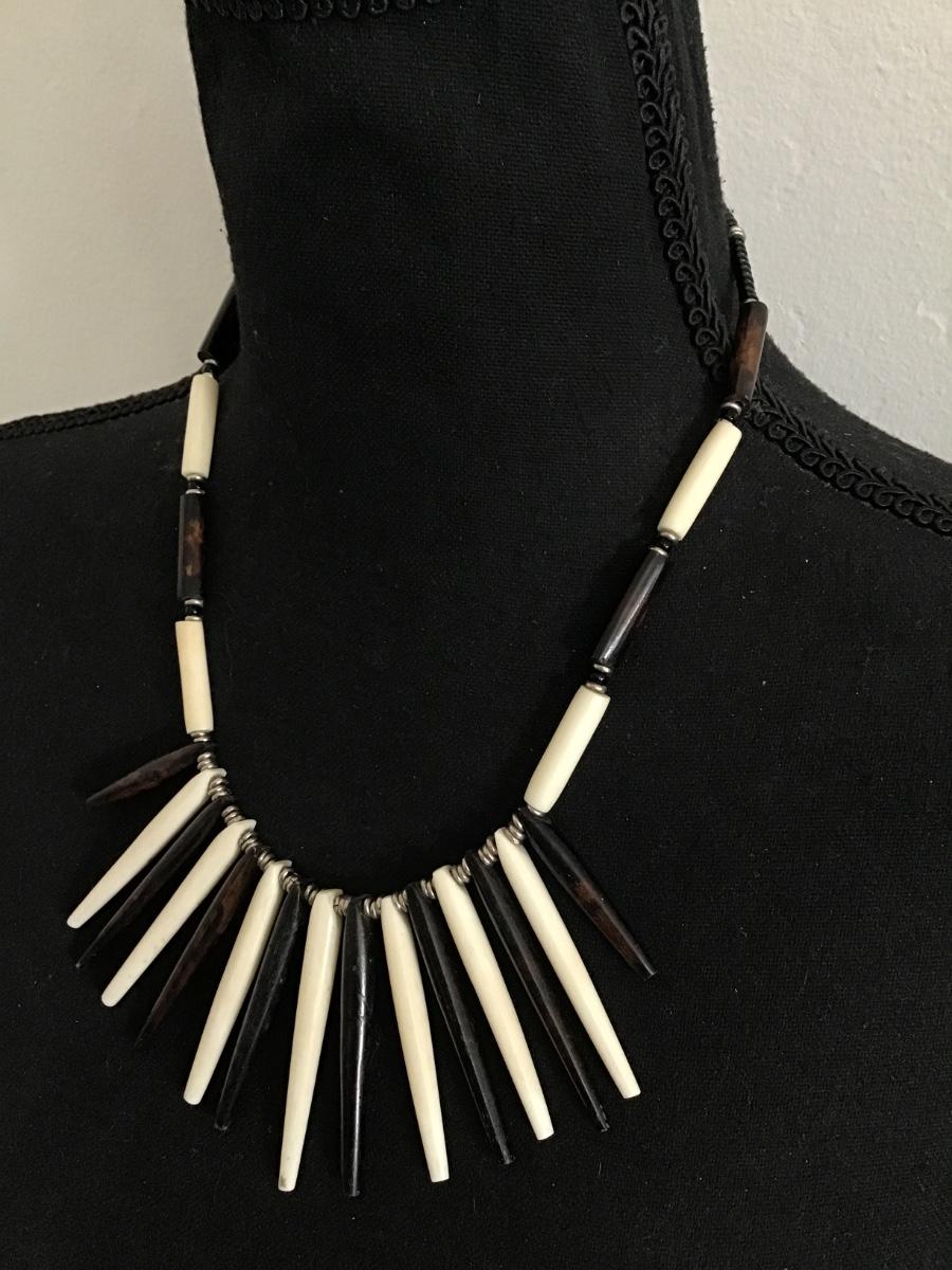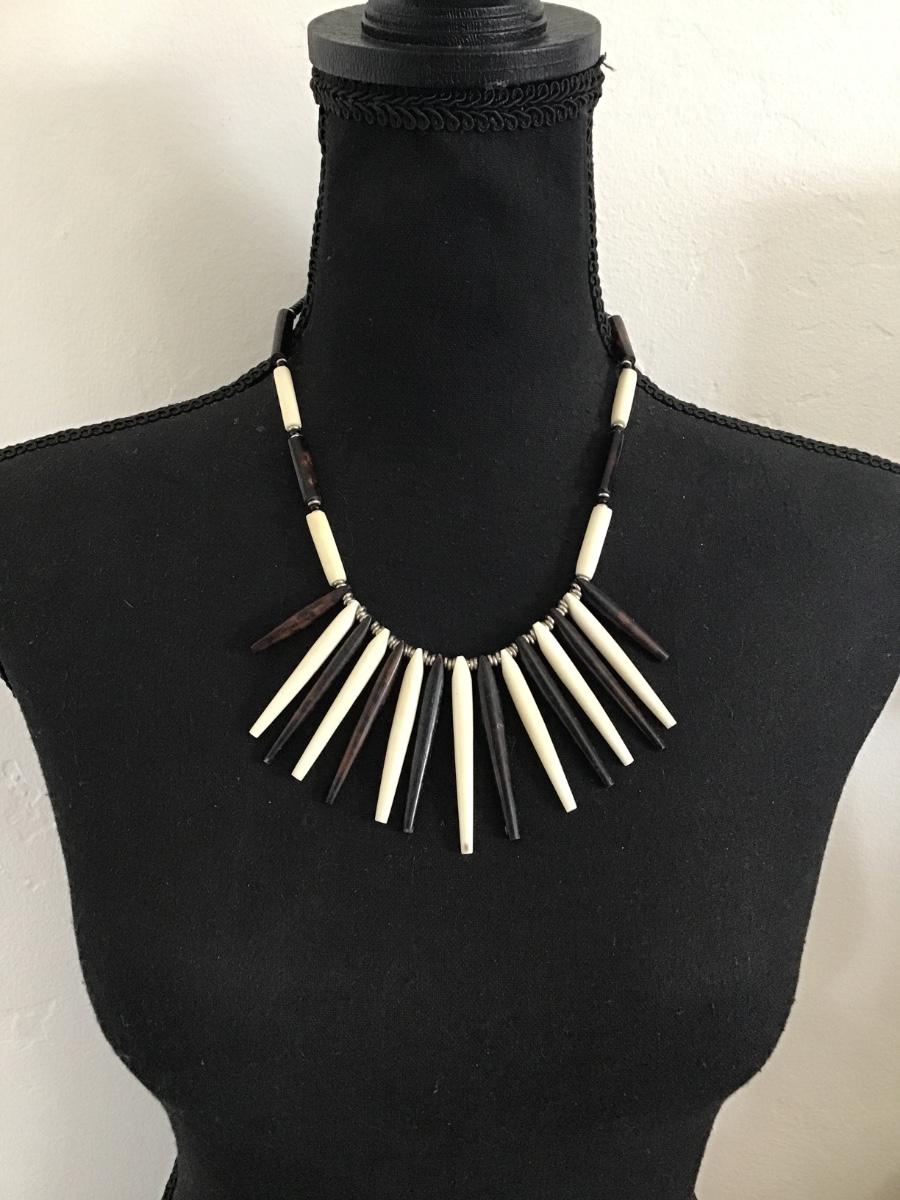 Vintage natural bone or horn spike collar statement necklace ethnic