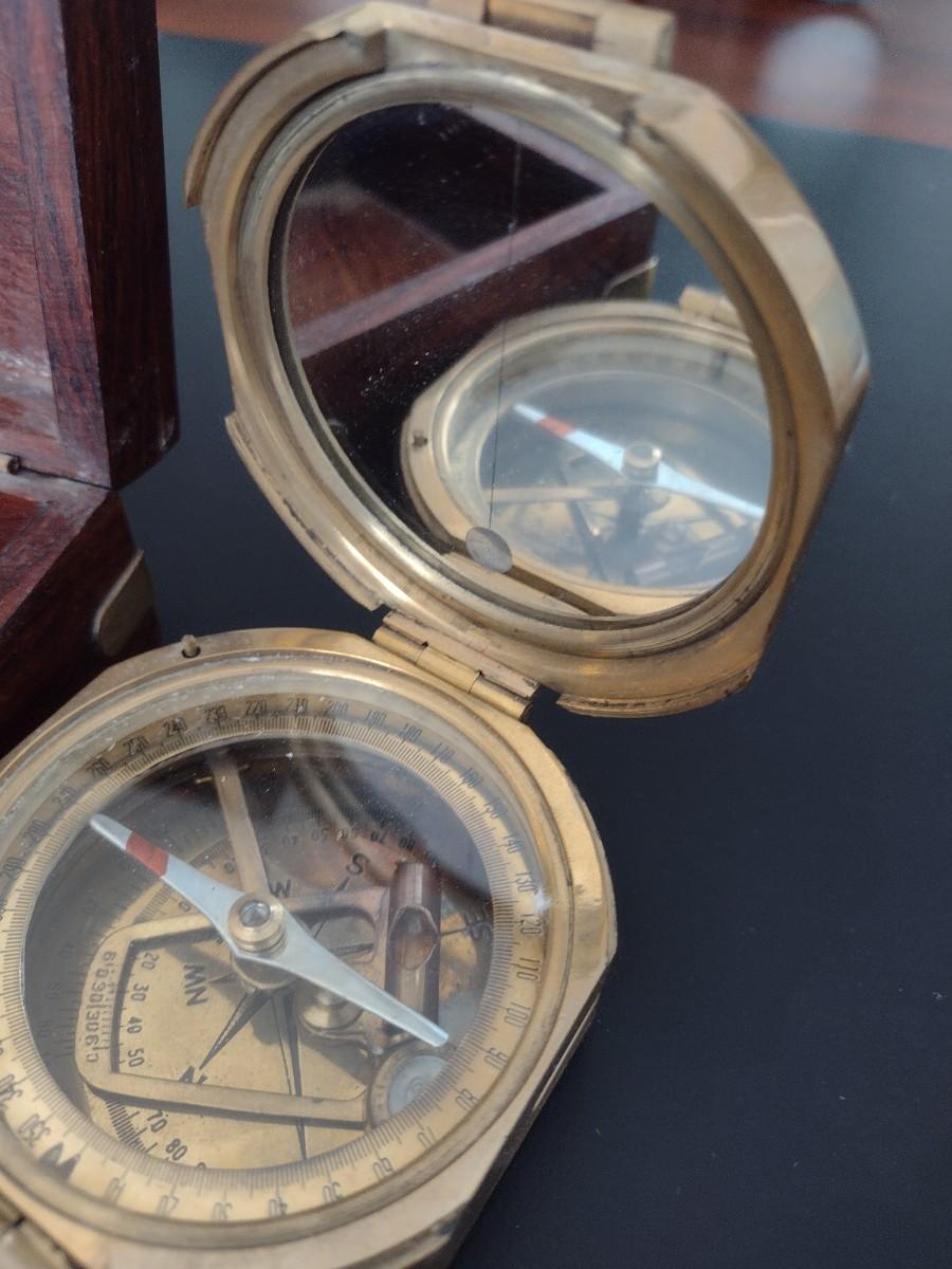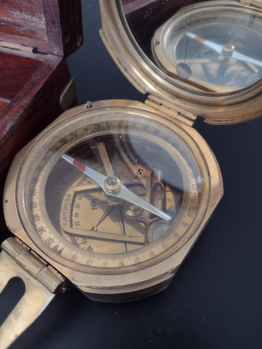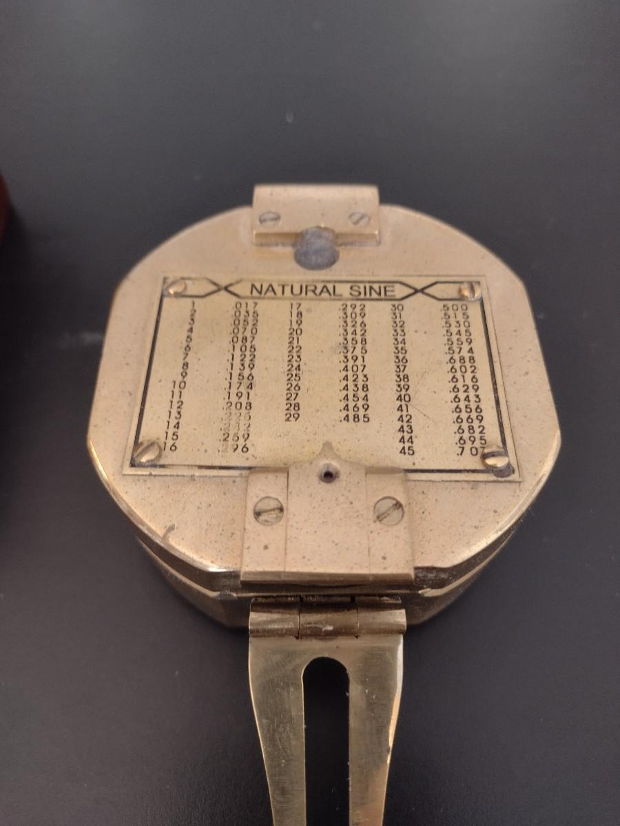 Vintage Natural Sine Brass Case Compass with Wood Storage Box