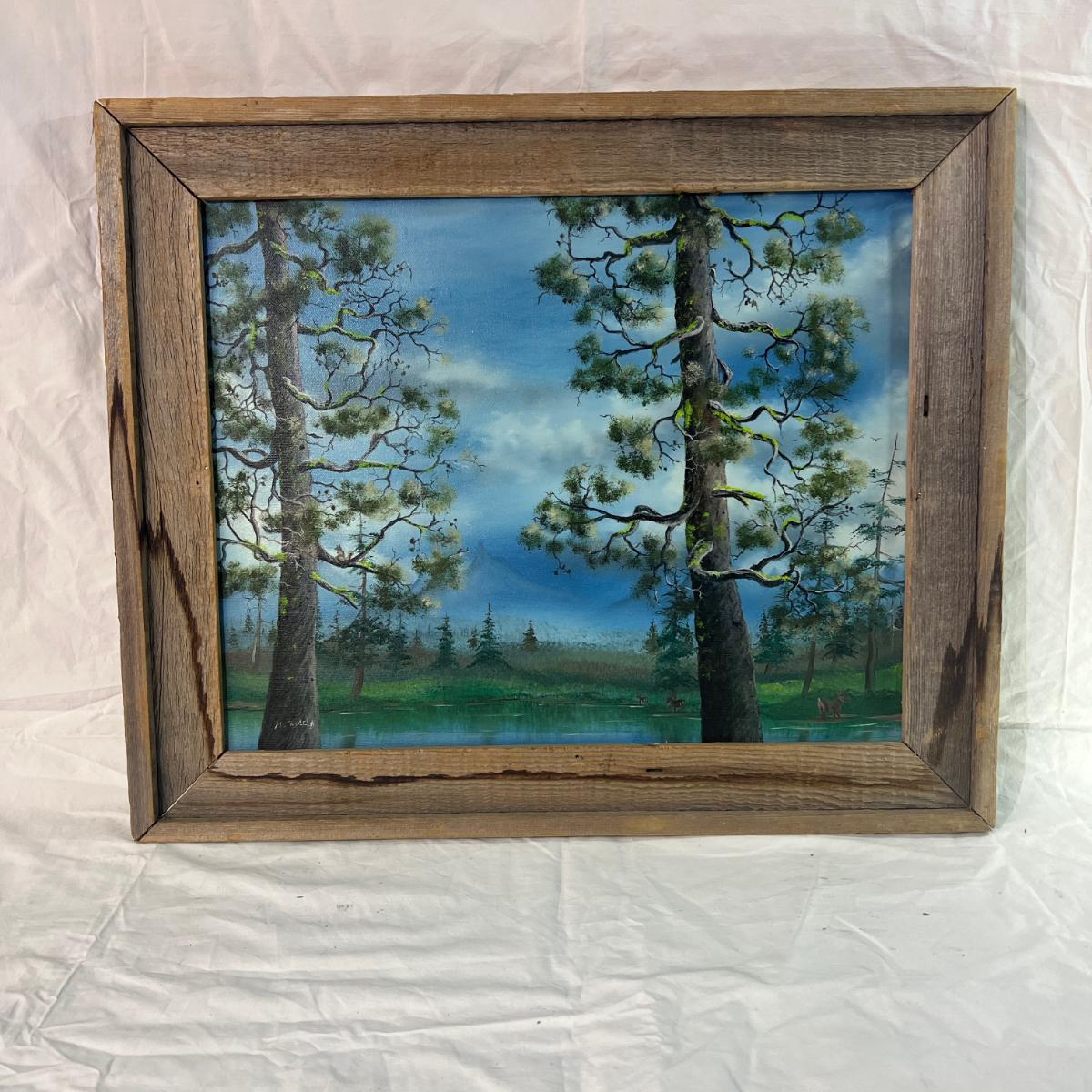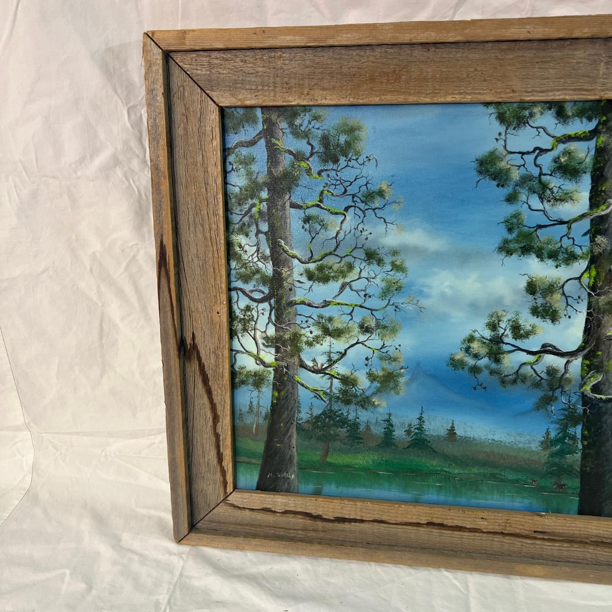 Vintage Natural Wood Frame for Painted Art of Mossy Tree Lake