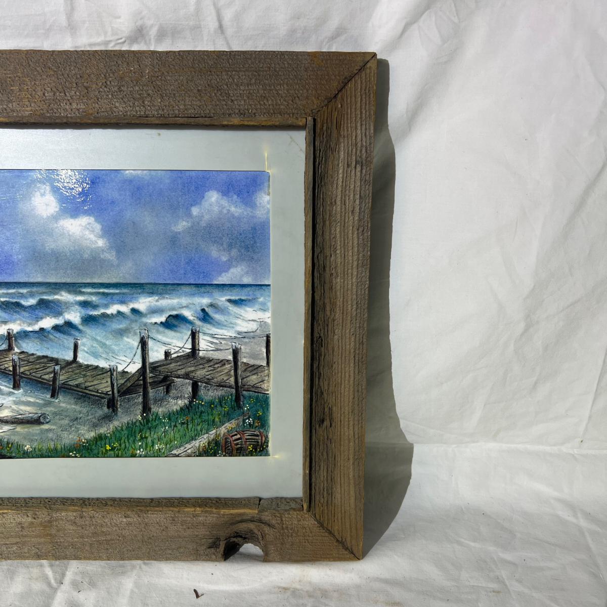 Vintage Natural Wood Frame for Laminated Drawing of Beach Dock