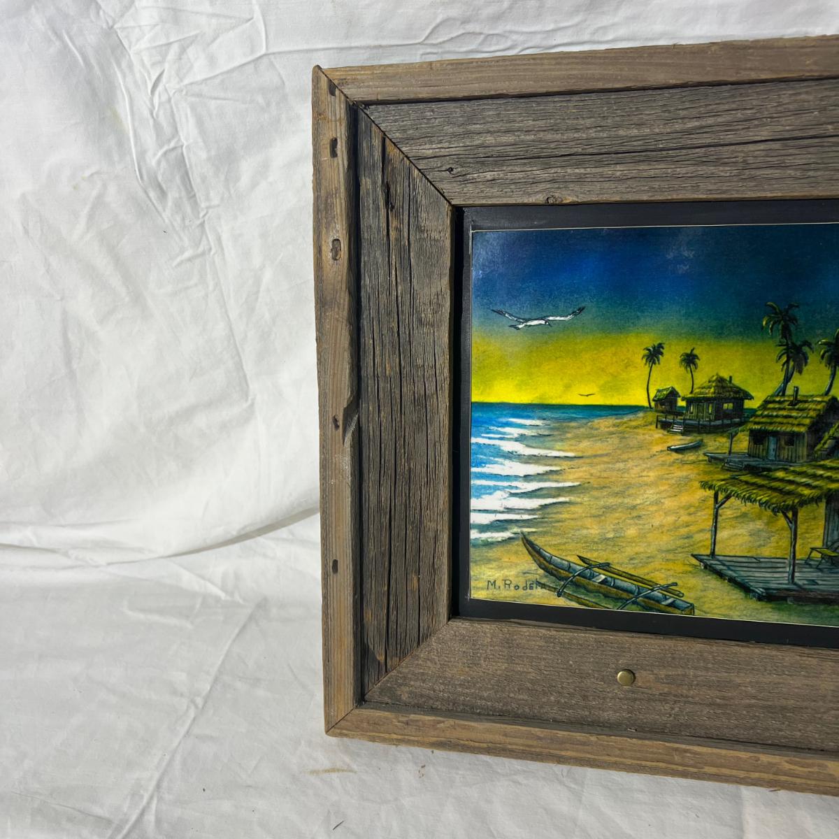 Vintage Natural Wood Frame for Laminated Drawing of Beach House