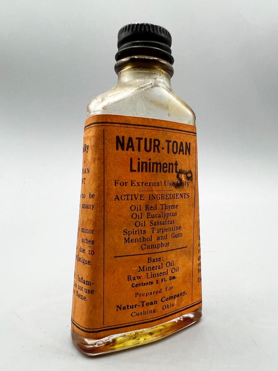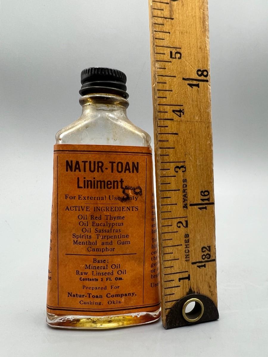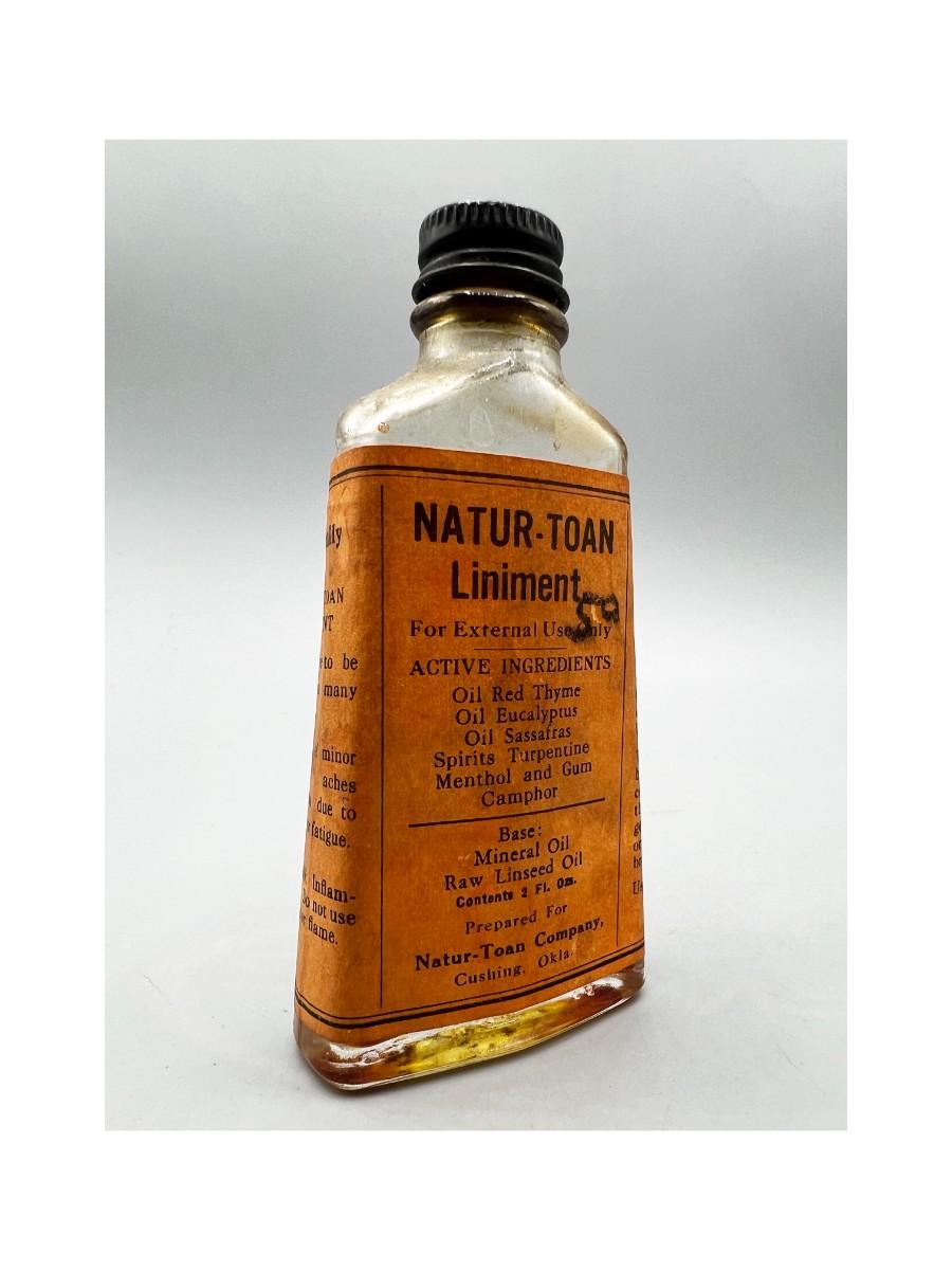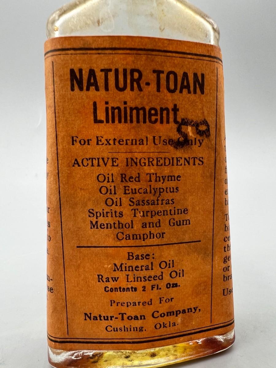 Antique Natur-Toan Oil Ointment Bottle Paper Label Cushing Oklahoma
