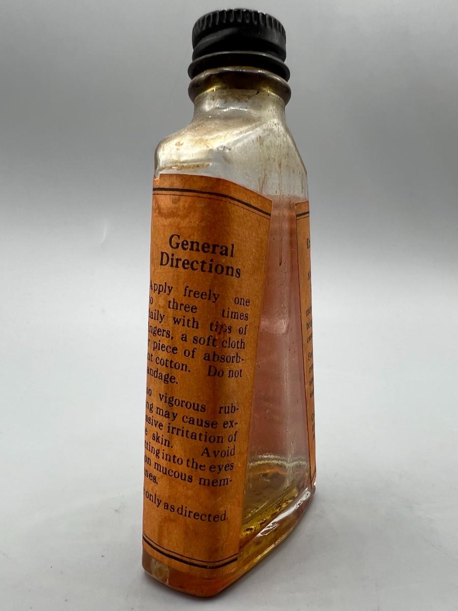 There is vintage wear and use to the bottle, but there is no significant damage to the paper label or the glass and is in good collectible condition. Check pictures fore more details and for sizing.