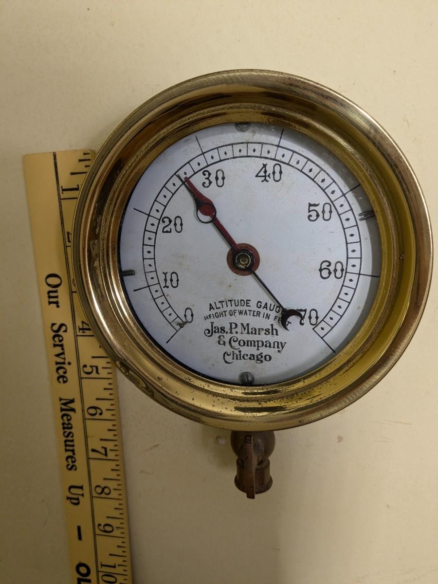 Vintage Nautical Brass Ship Altitude Gauge. Jas P Marsh Co, Chicago