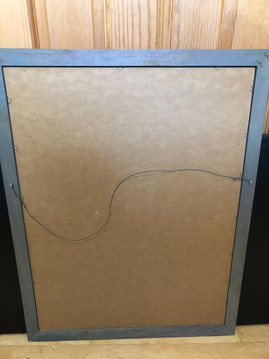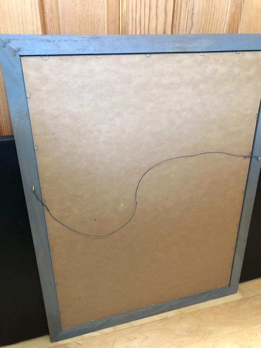 All items are sold as is, as found in the estate. Please see all photos for content, measurements and condition. The glass is very dirty, can not tell if the actual art itself has discoloration, but it does have some odor.