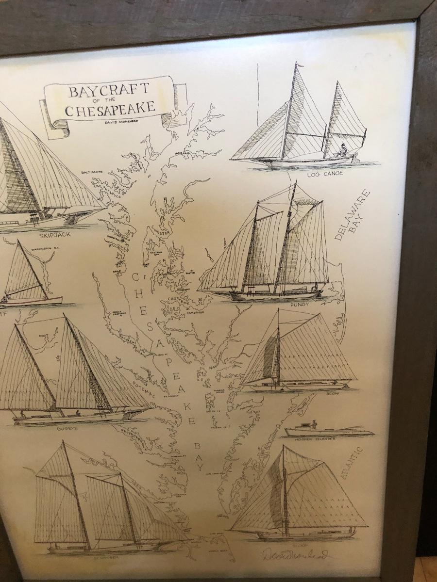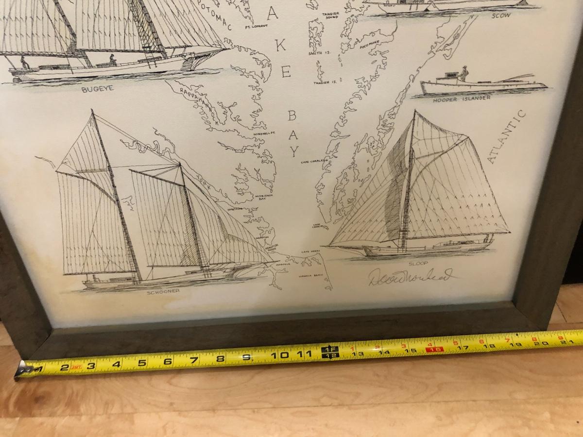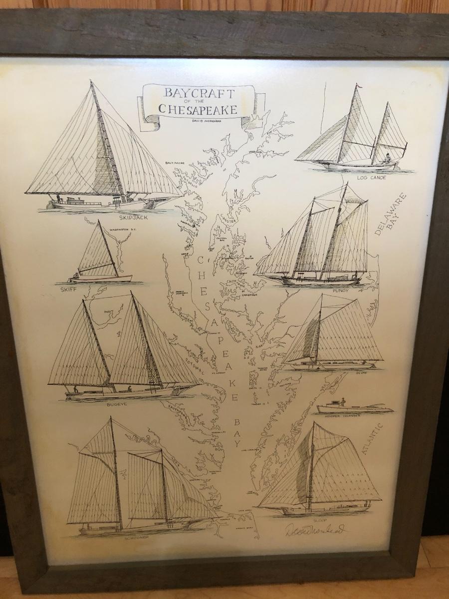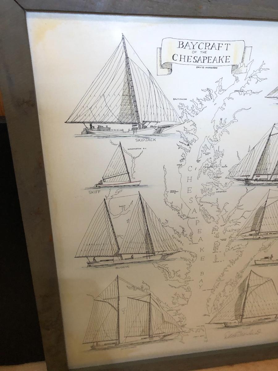 Vintage Nautical Signed Drawing of Baycraft of the Chesapeake
