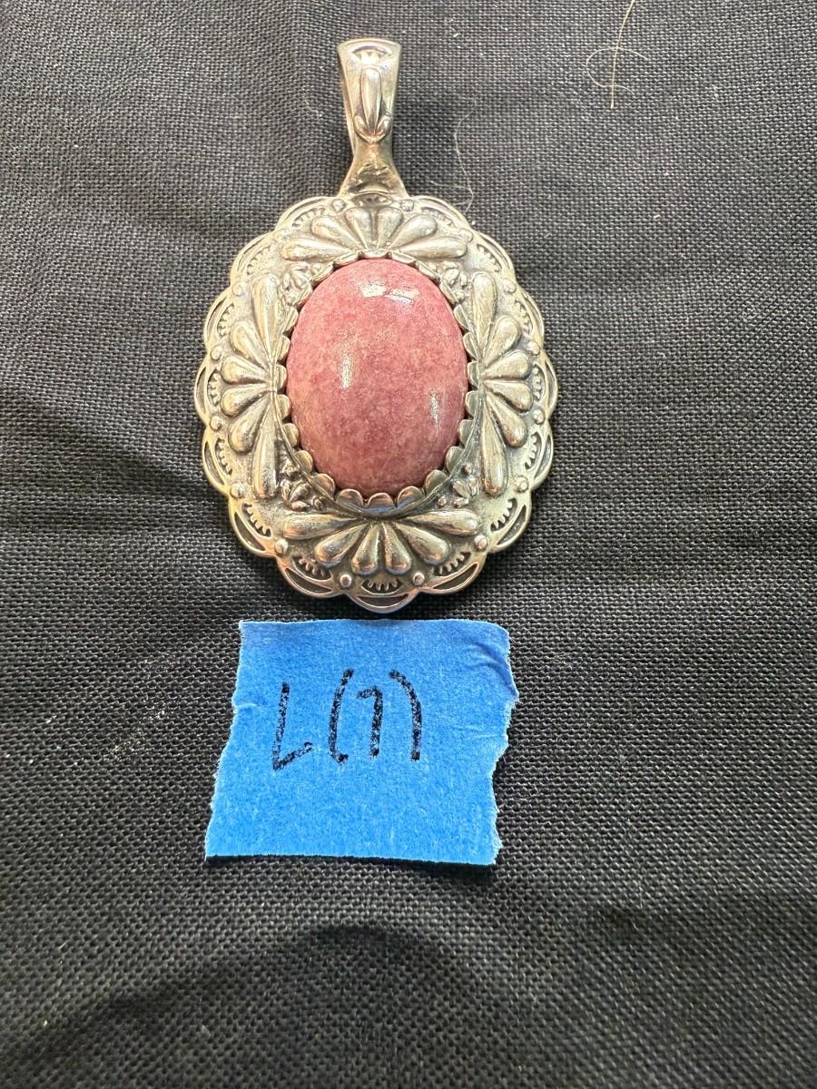 Vintage Navajo 925 Sterling Silver Rhodonite Pendant