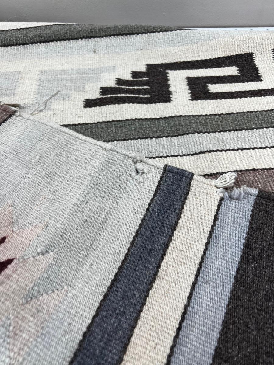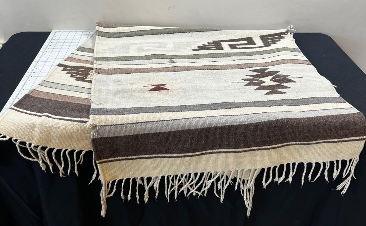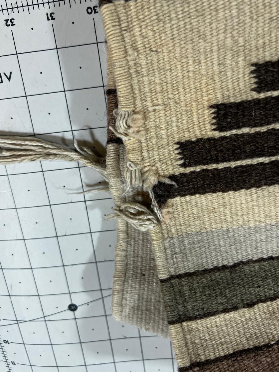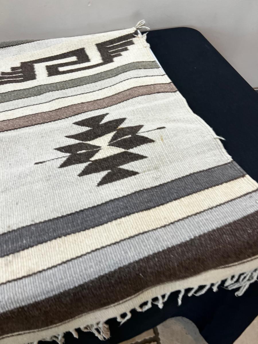Wool Older, Shows wear and staining, but its still awesome, just loved already! Measures 28" X 60" Authentic real deal rug!