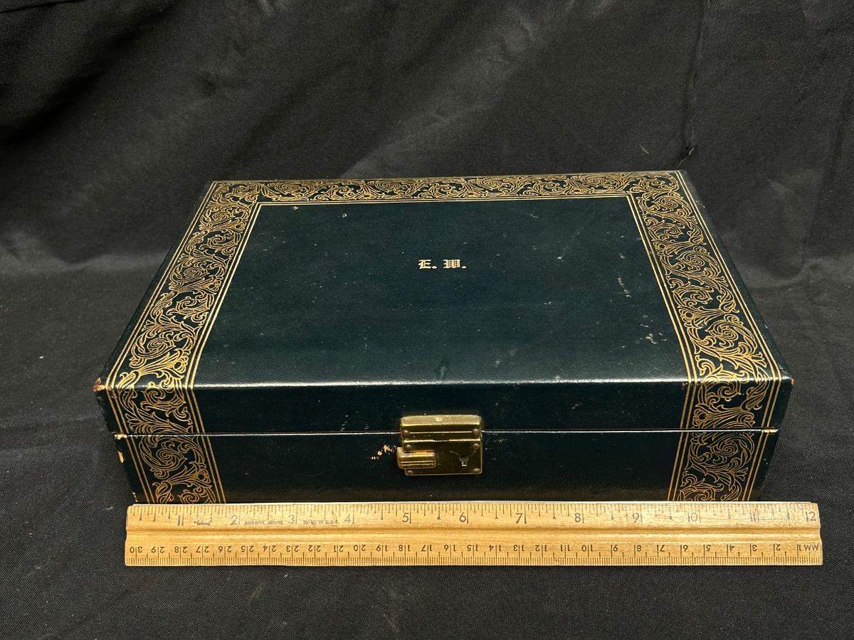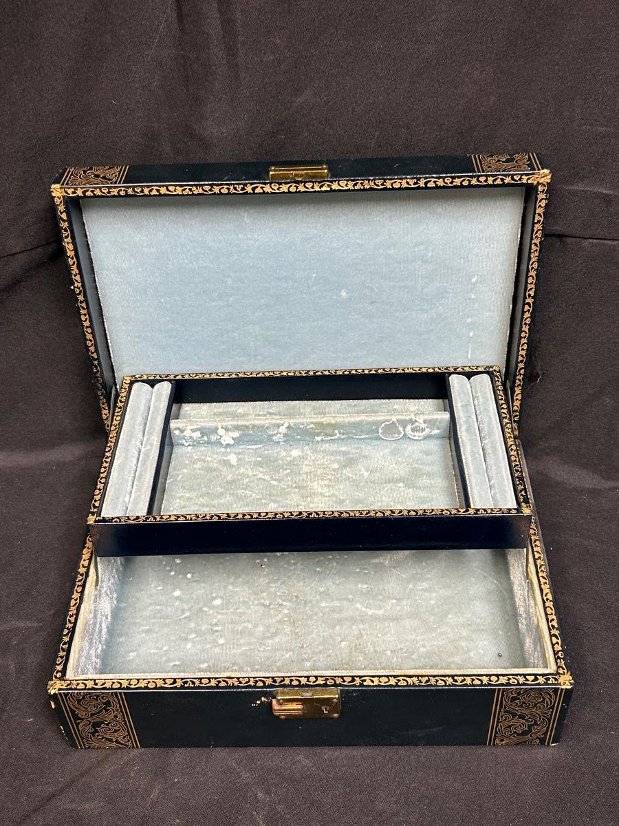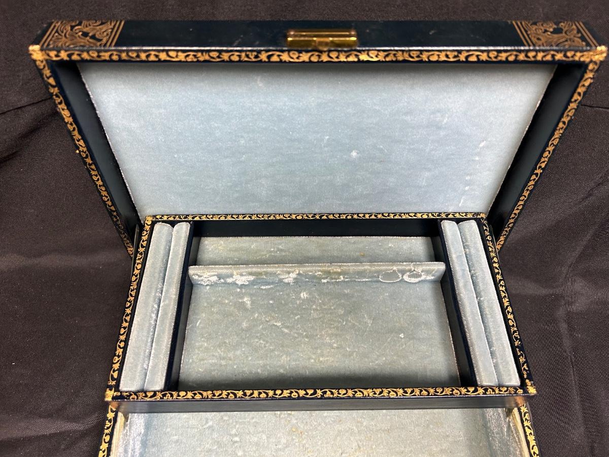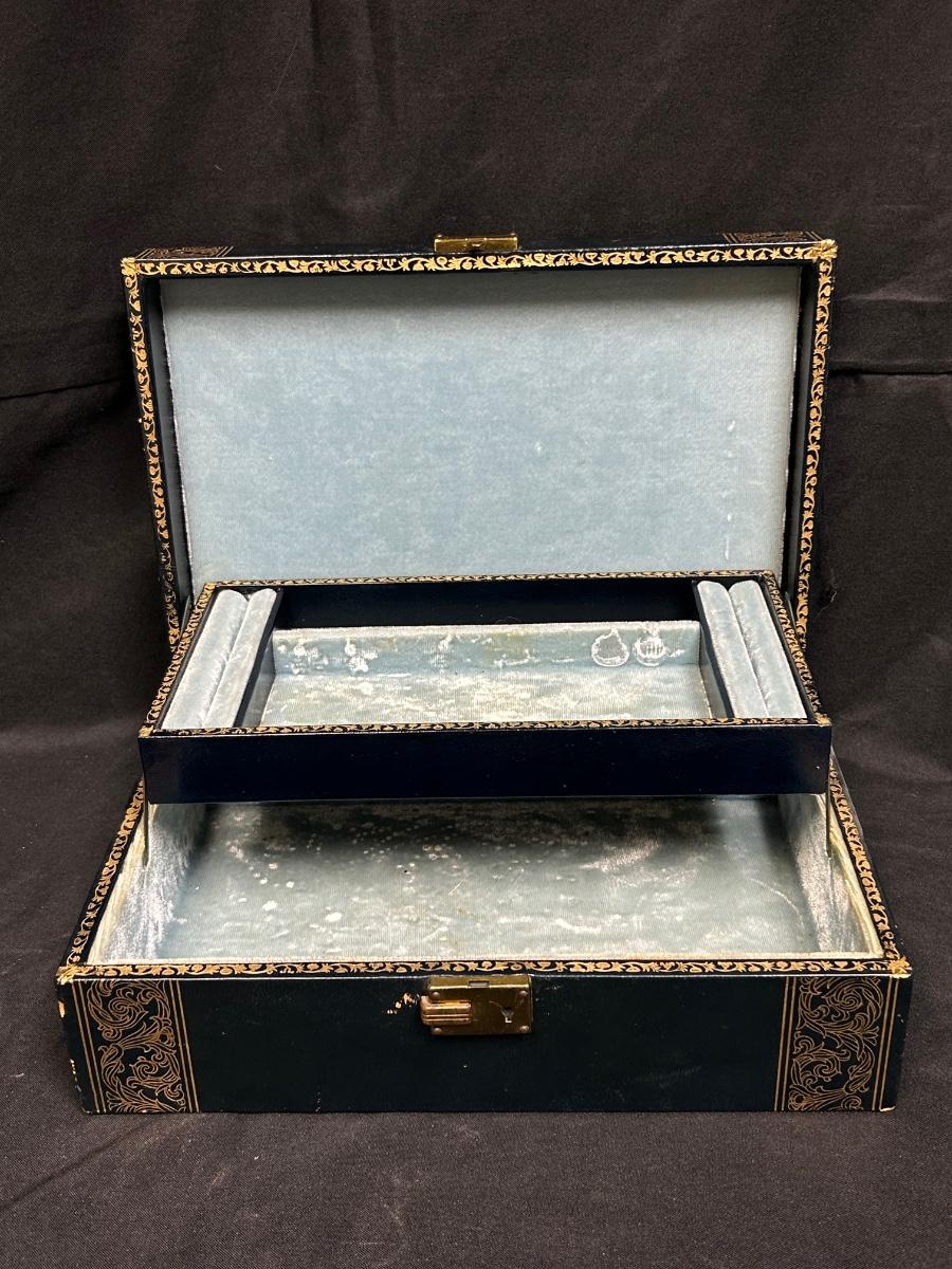 Vintage Navy Blue and Gold Tiered Jewlery Box