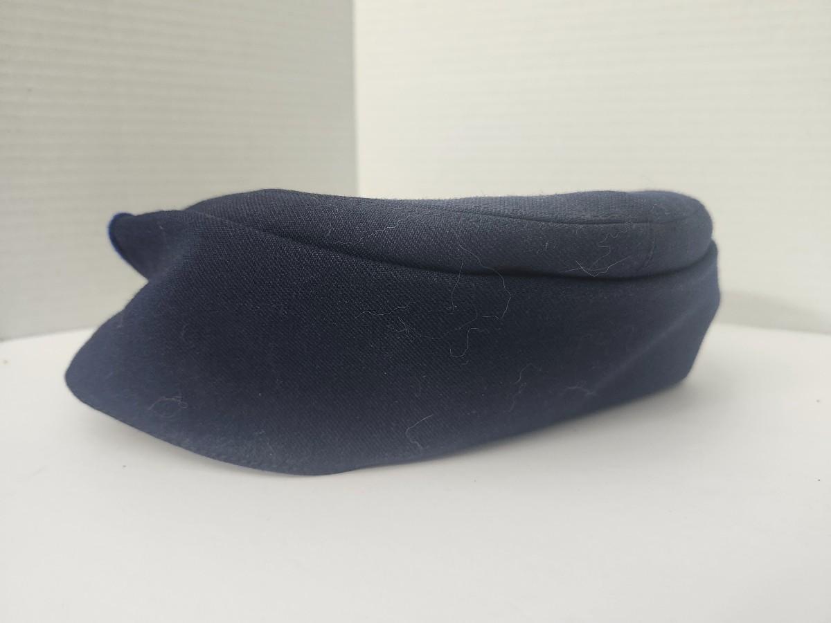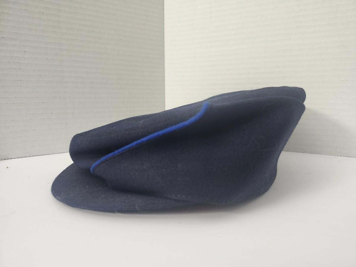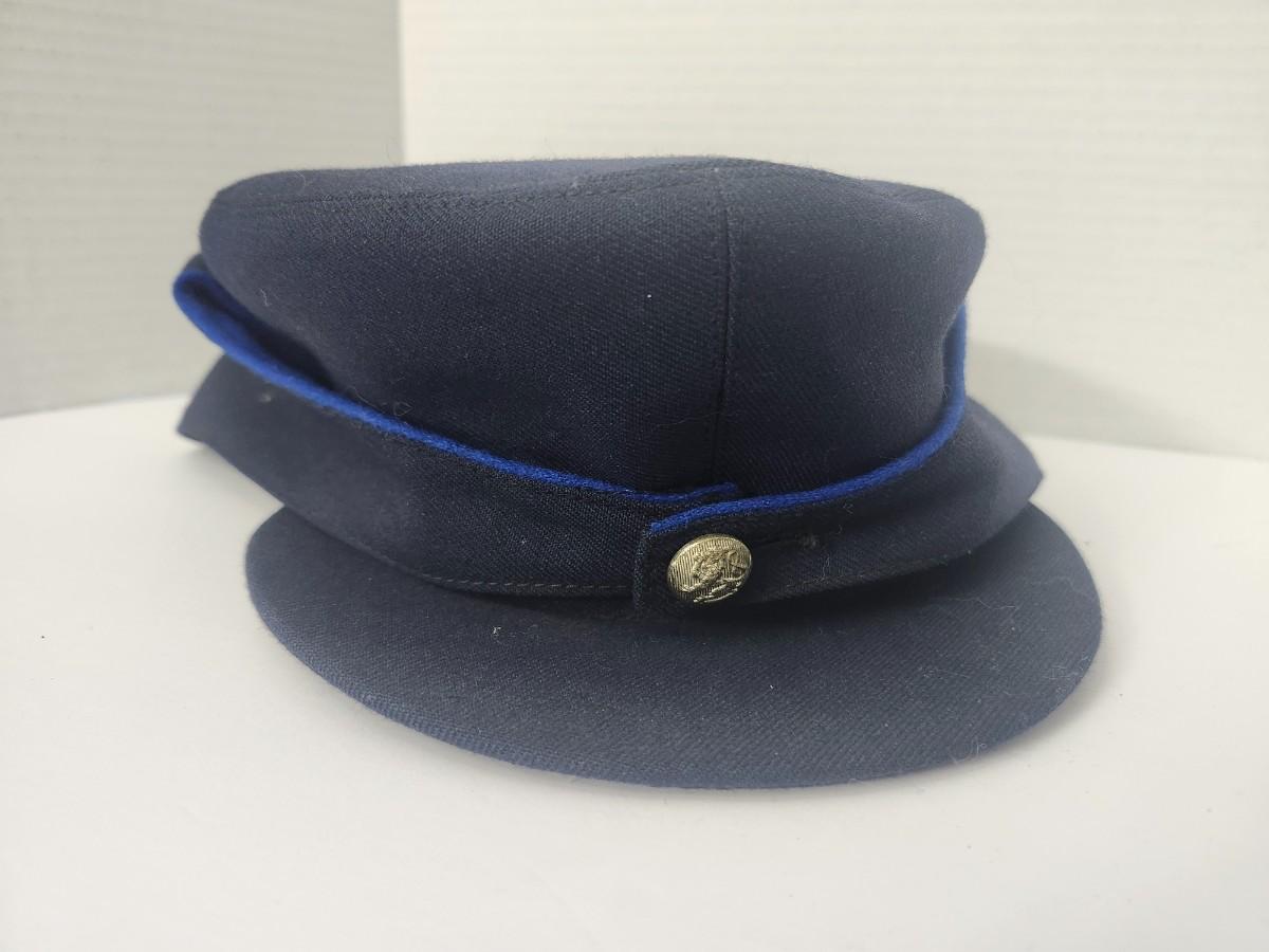 Vintage Navy Blue Civil War Style Kepi Hat with Blue Piping Brass Button Trim