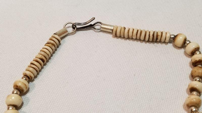 Assumed to be bone, very pretty, looks hand carved as you can see the difference in each piece. Add $8.00 for shipping.
