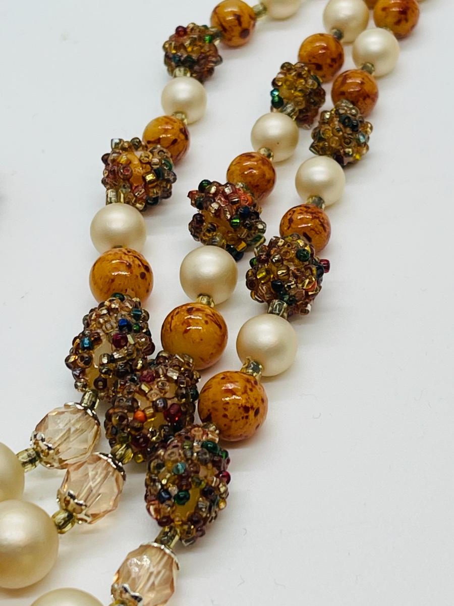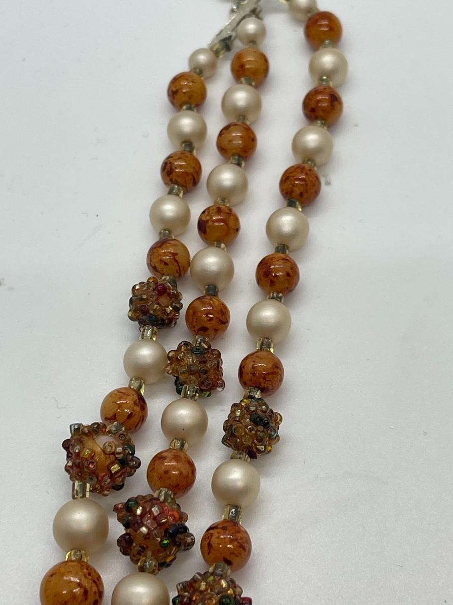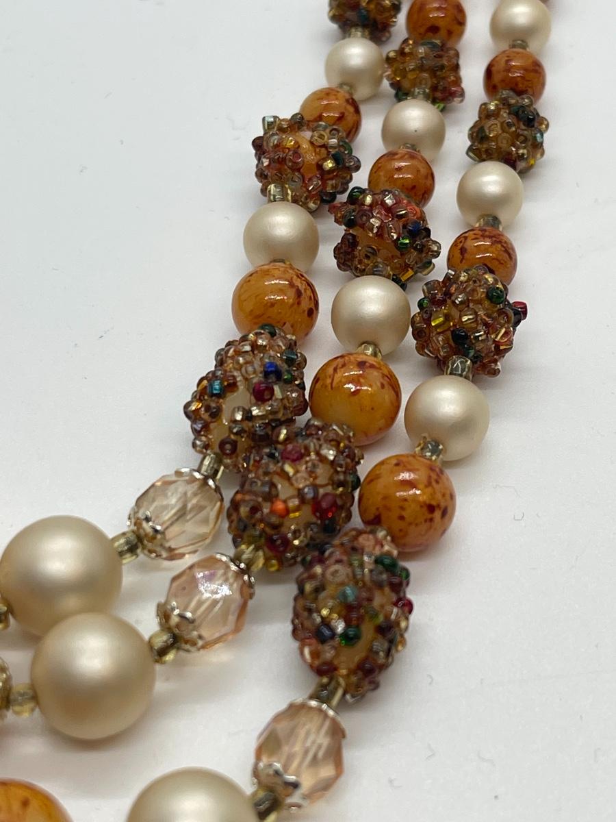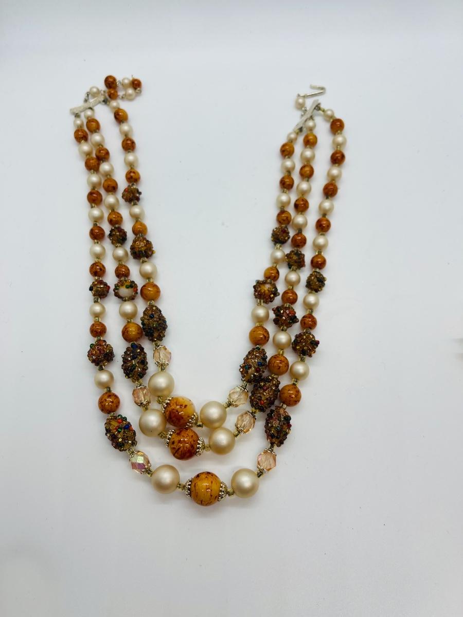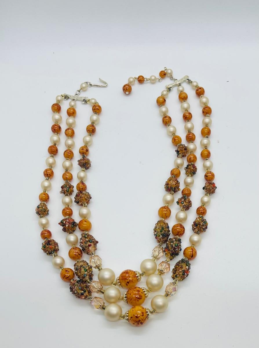 Pretty vintage beaded 3 strand necklace. One bead is missing a little bedazzle, but it could be turned over for wearing. Funky and cute texture!