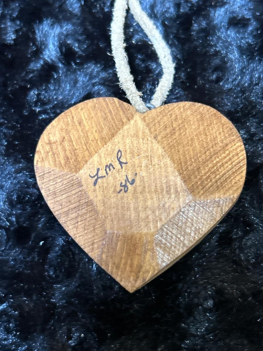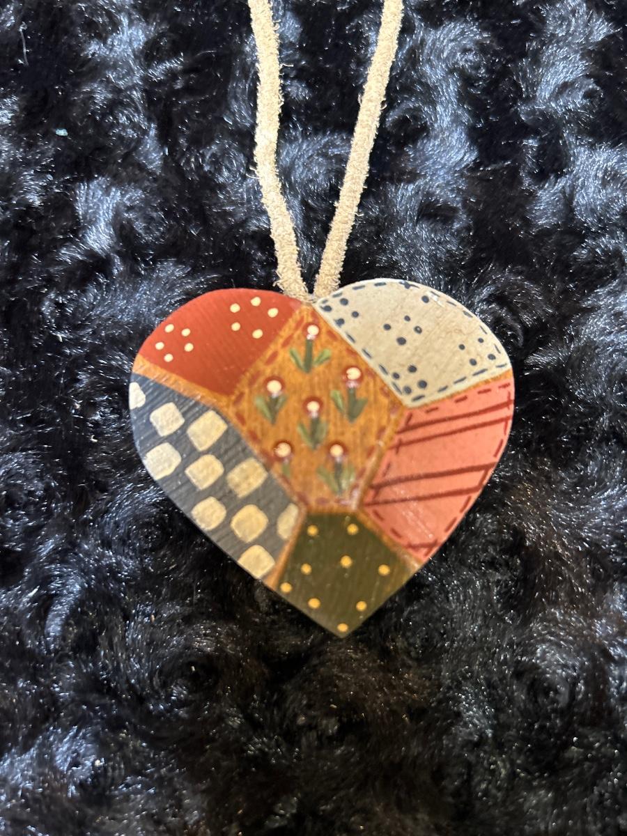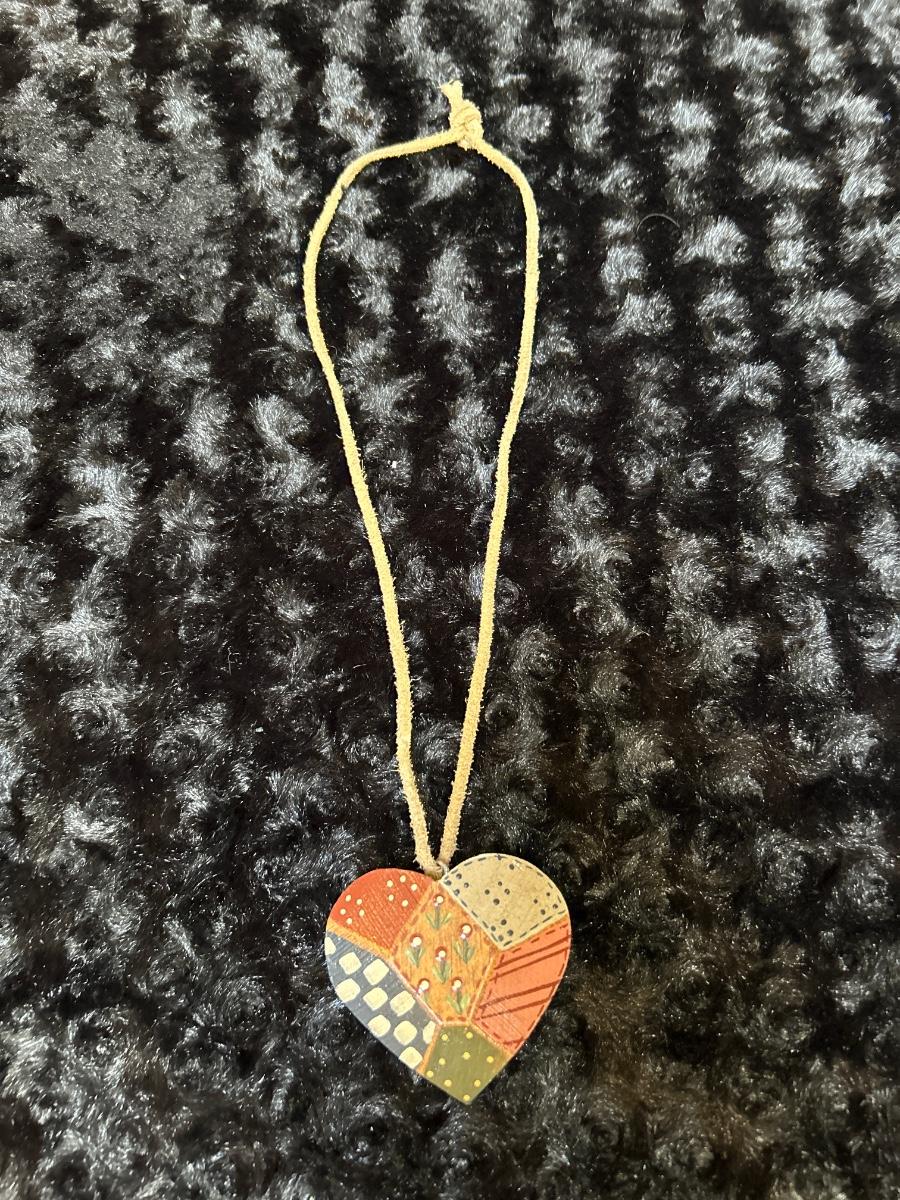 Vintage 1986 handcrafted quilt on heat pendant necklace wood/leather