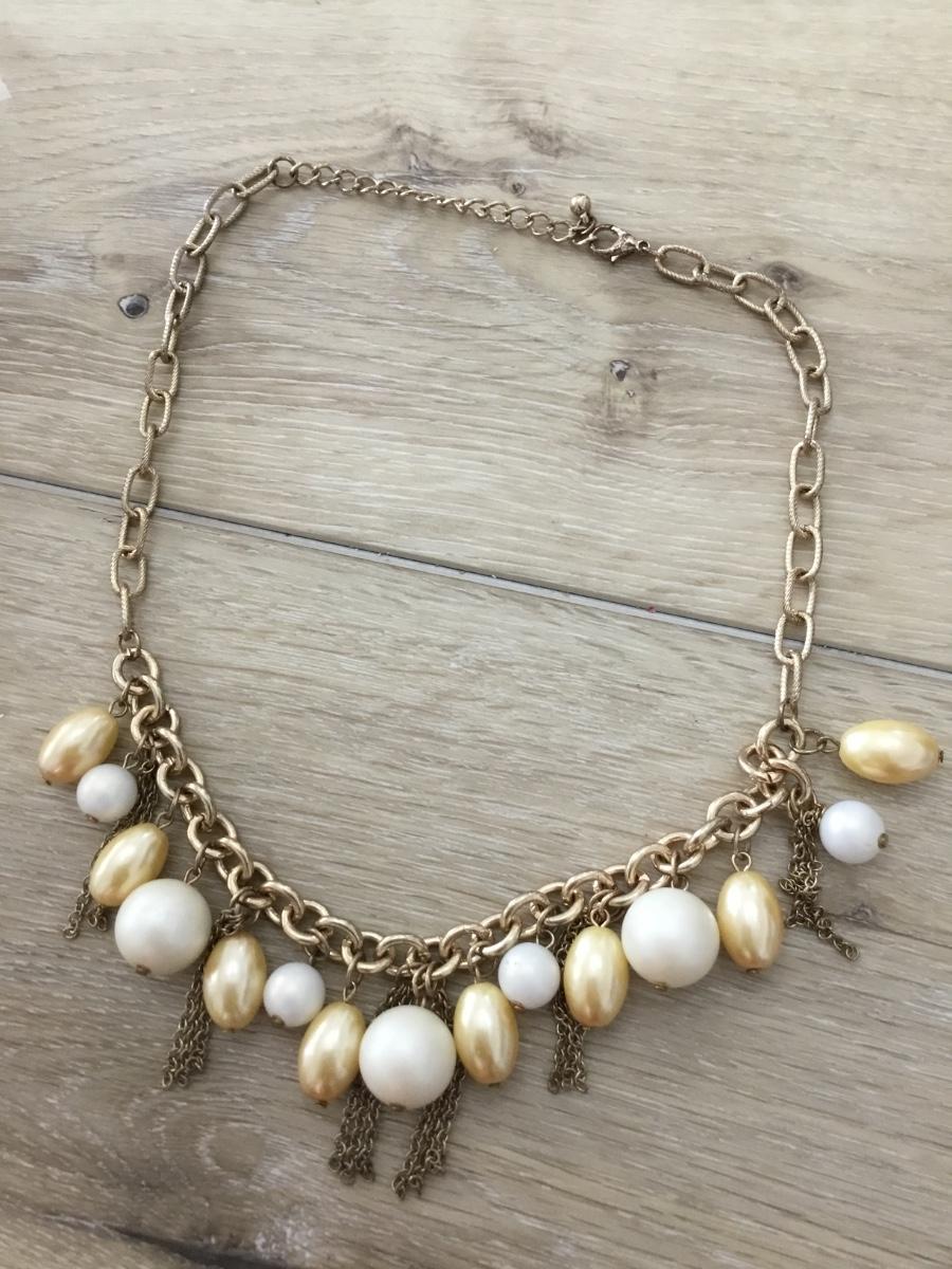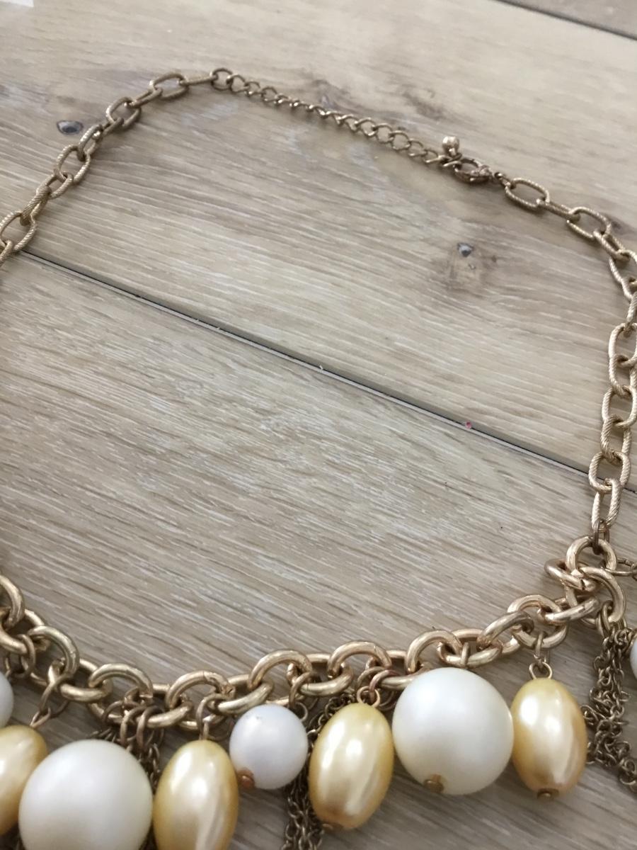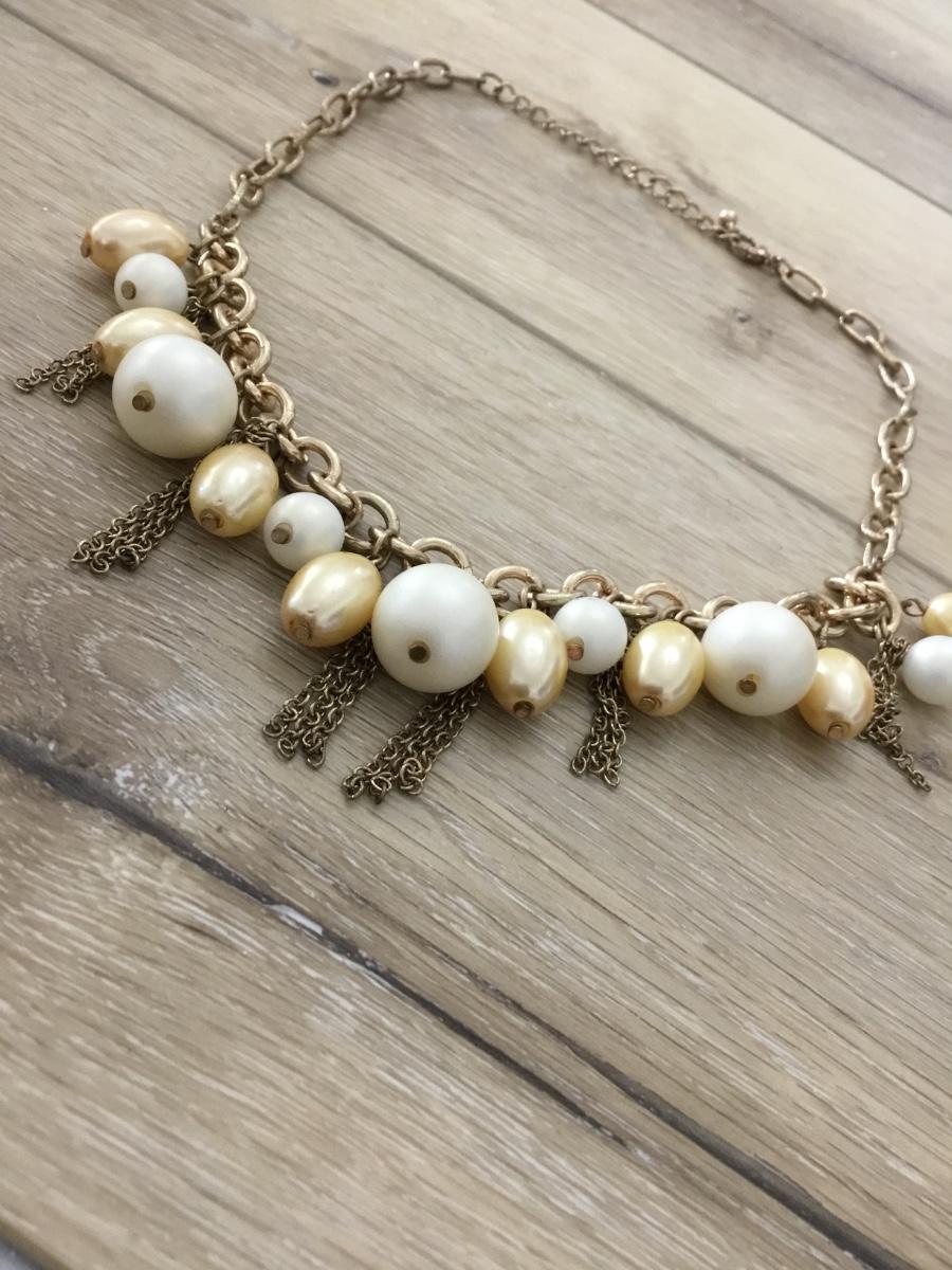 Vintage Necklace Chunky Gold Tone & Faux Pearl Chain Link Statement Piece
