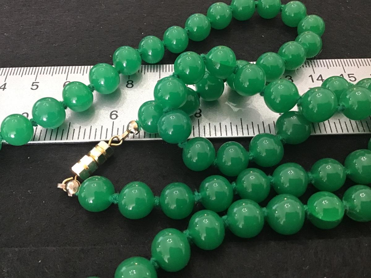 Vintage Necklace Green Glass or Stone IDK