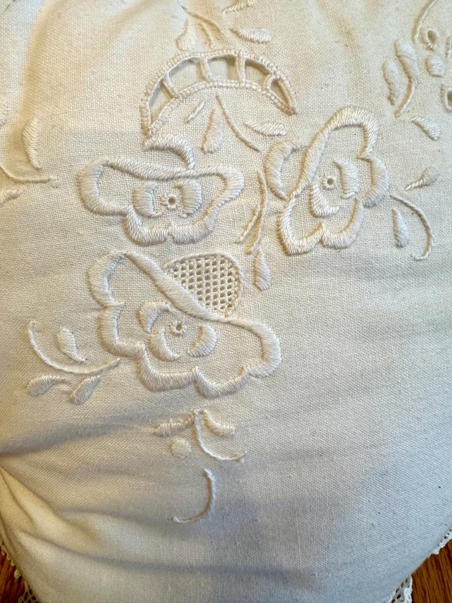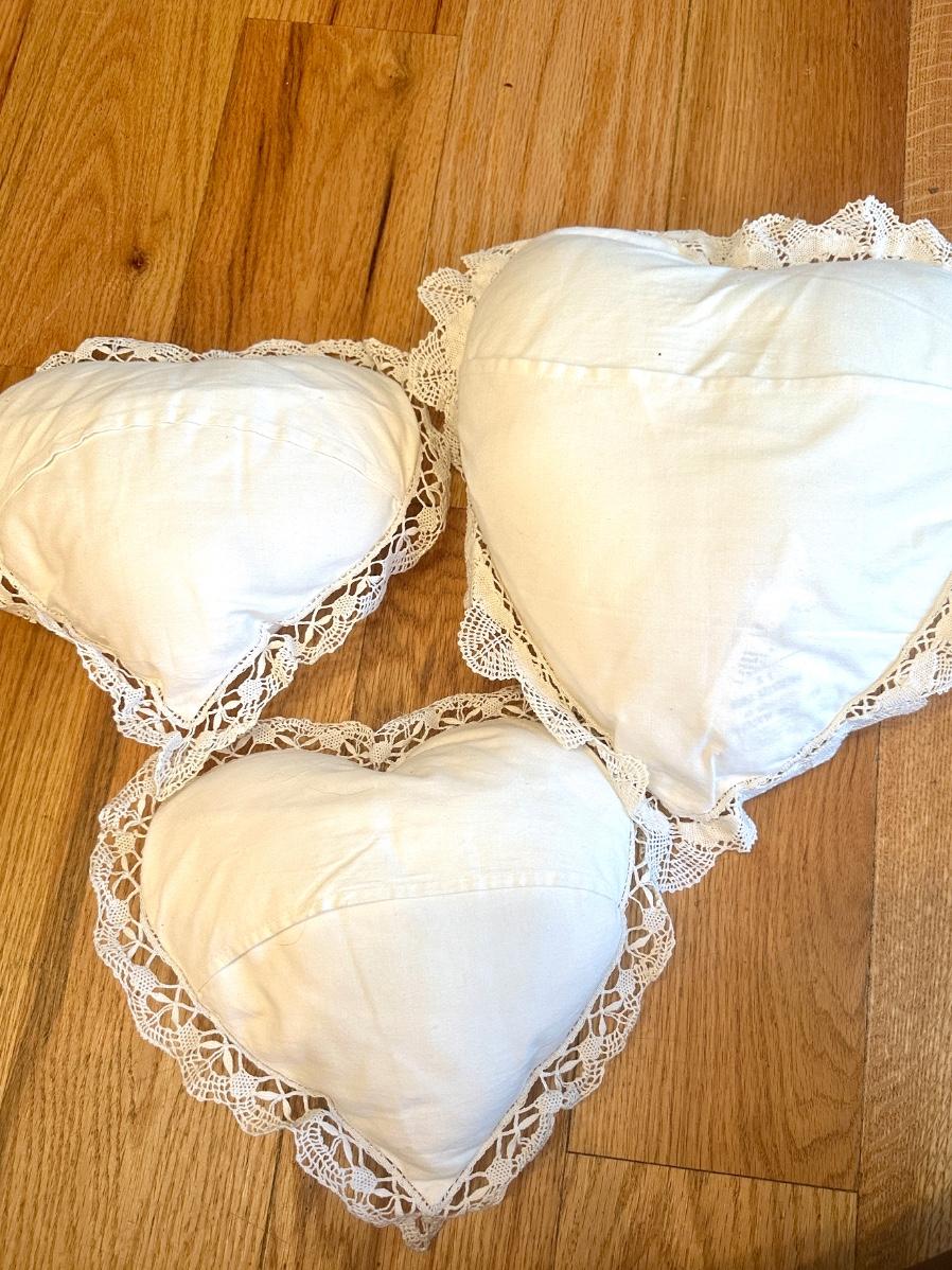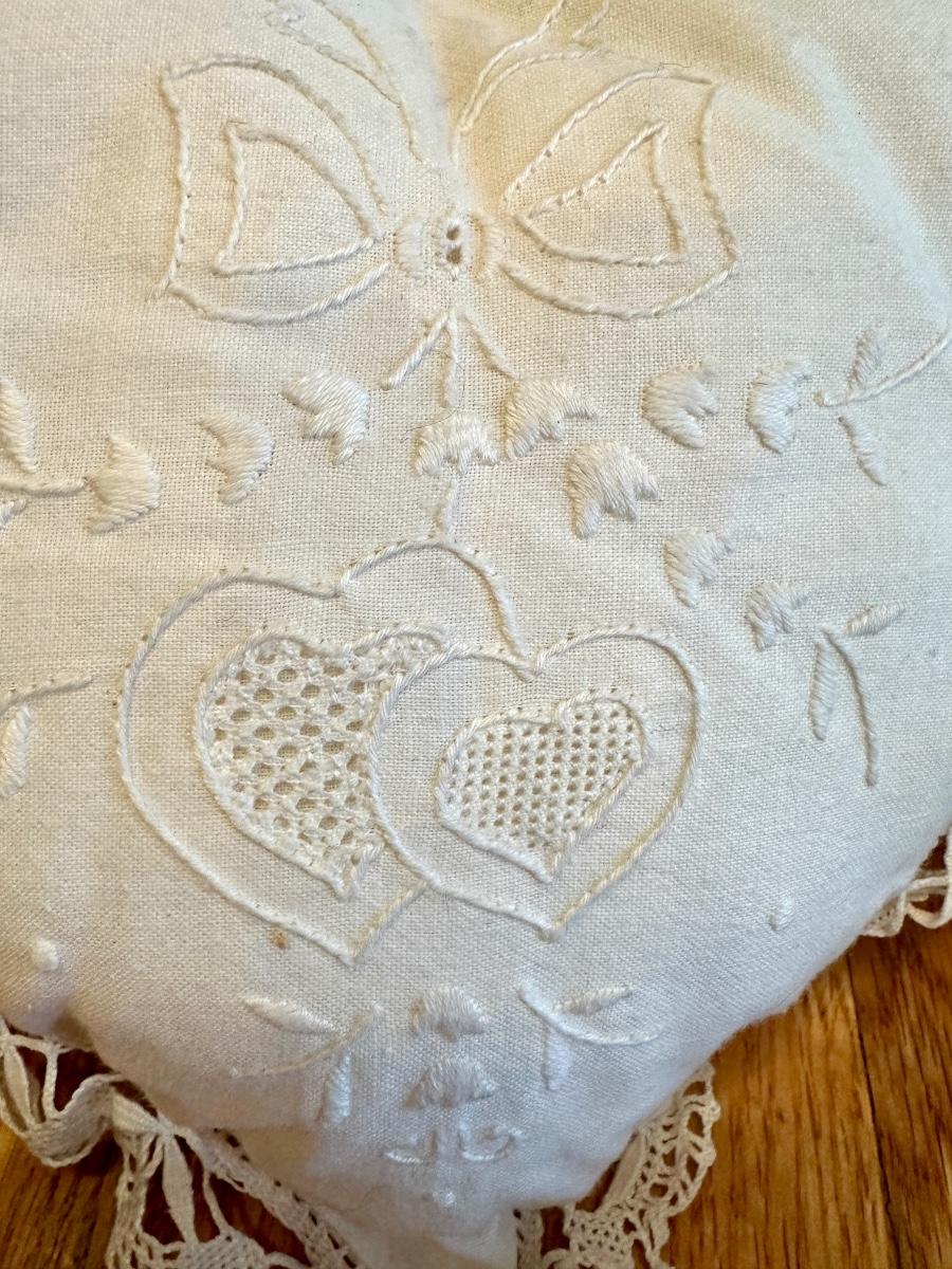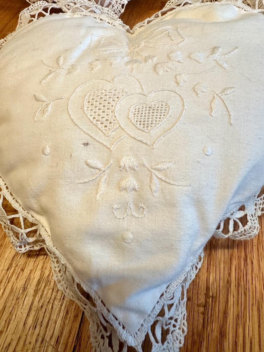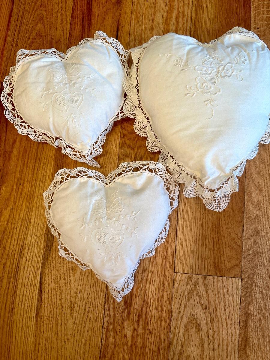 Vintage Needlepoint Heart Pillows with Lace Borders