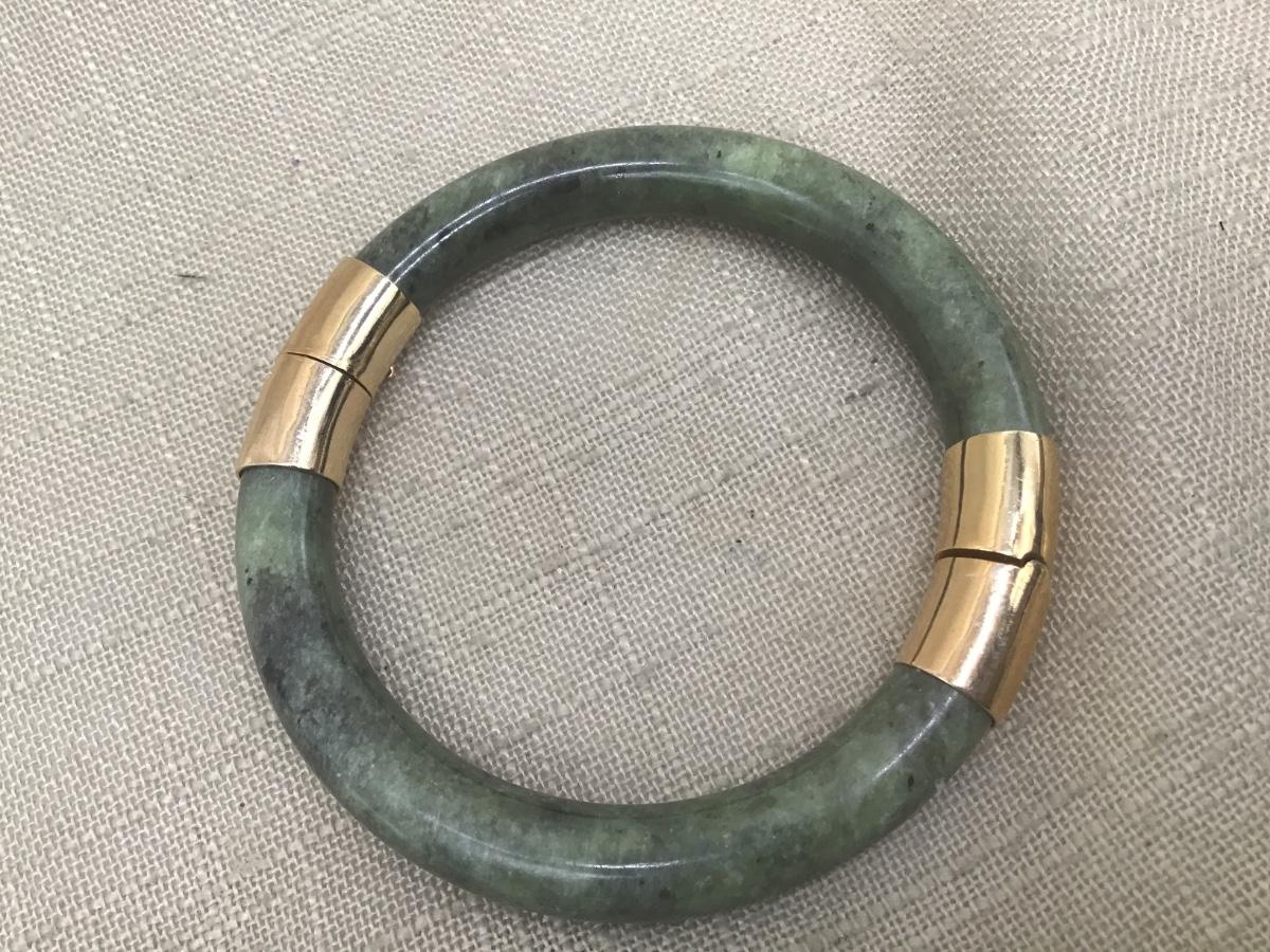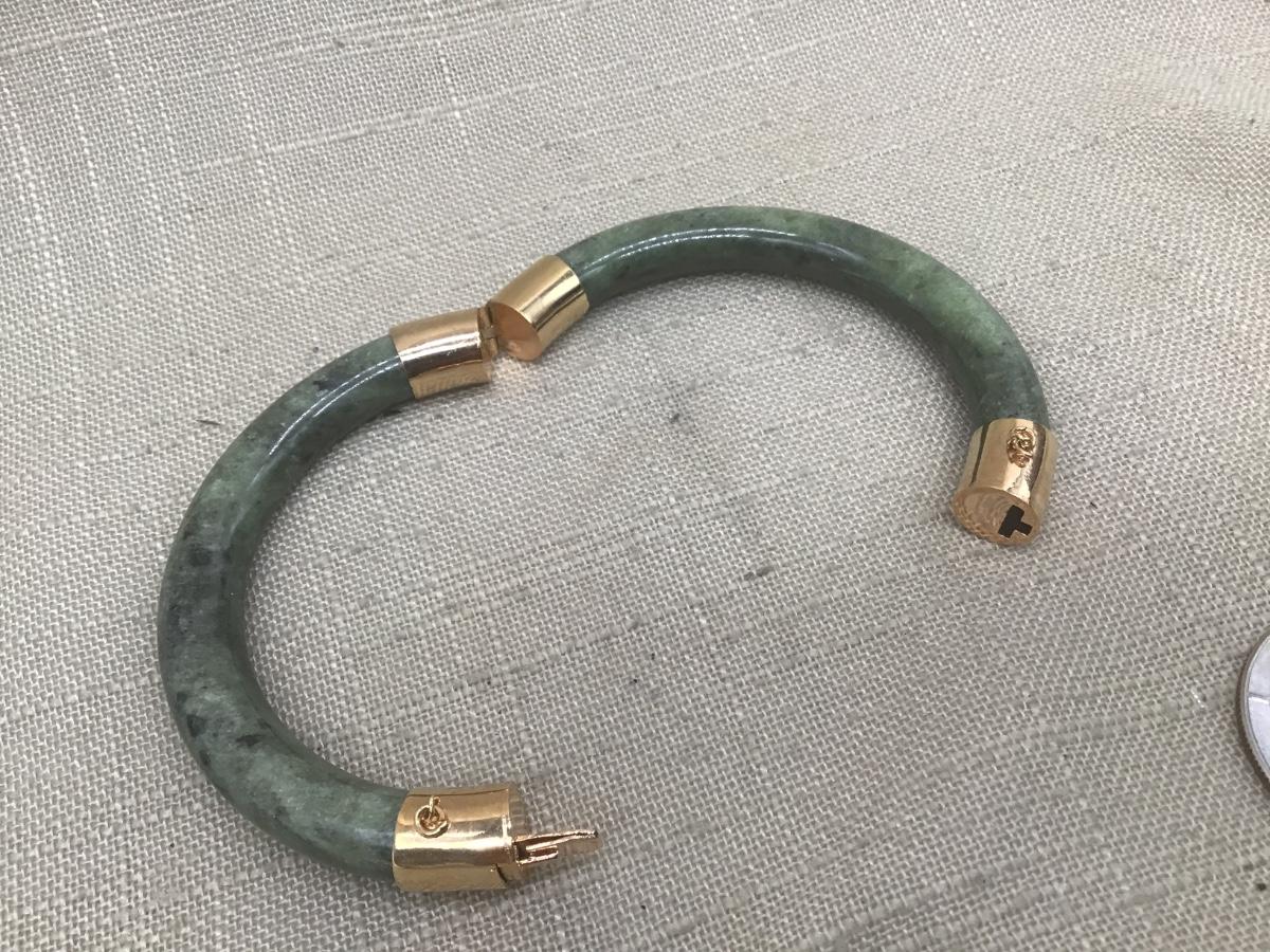 Vintage Nephrite Hinged Bangle Bracelet W/Safety Needs Chain
