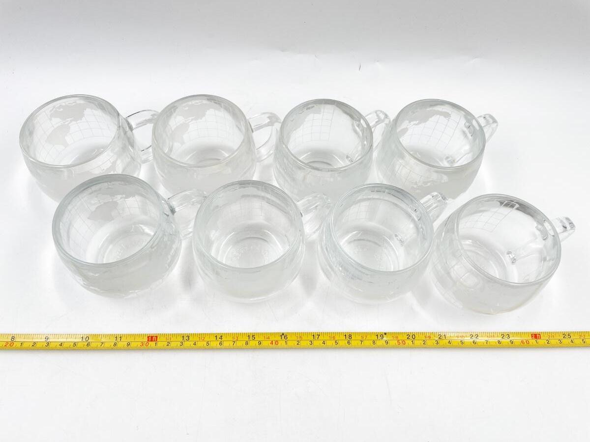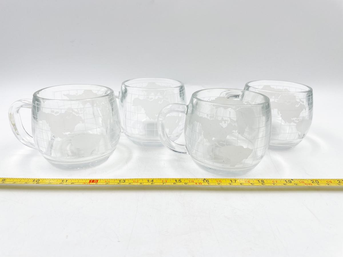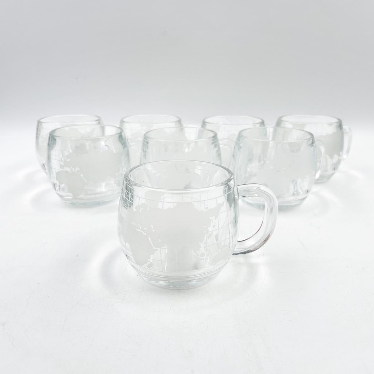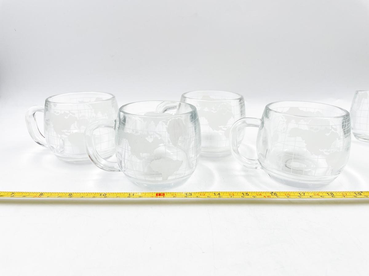 VINTAGE NESTLE CO 3” ETCHED GLASS WORLD MAP MUGS (8)