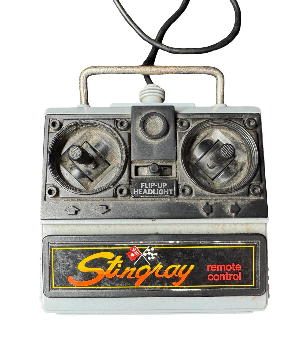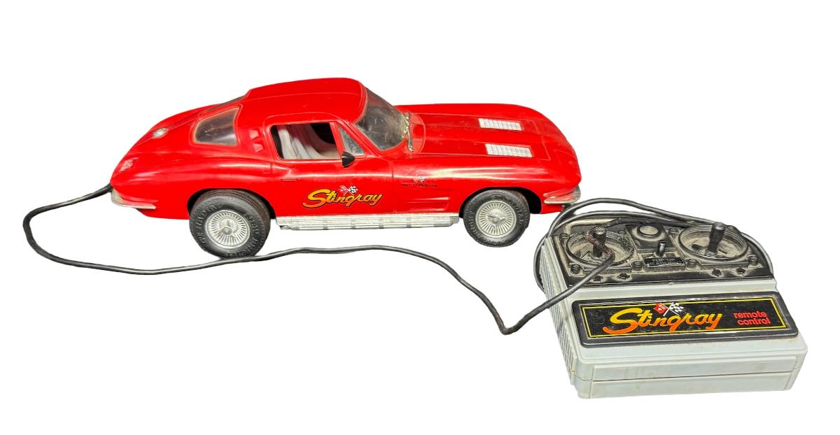 This is made in Hong Kong and is wired, as opposed to remote. It powers on with “C” batteries. Plastic construction. Measurement: 13”L. [JL]