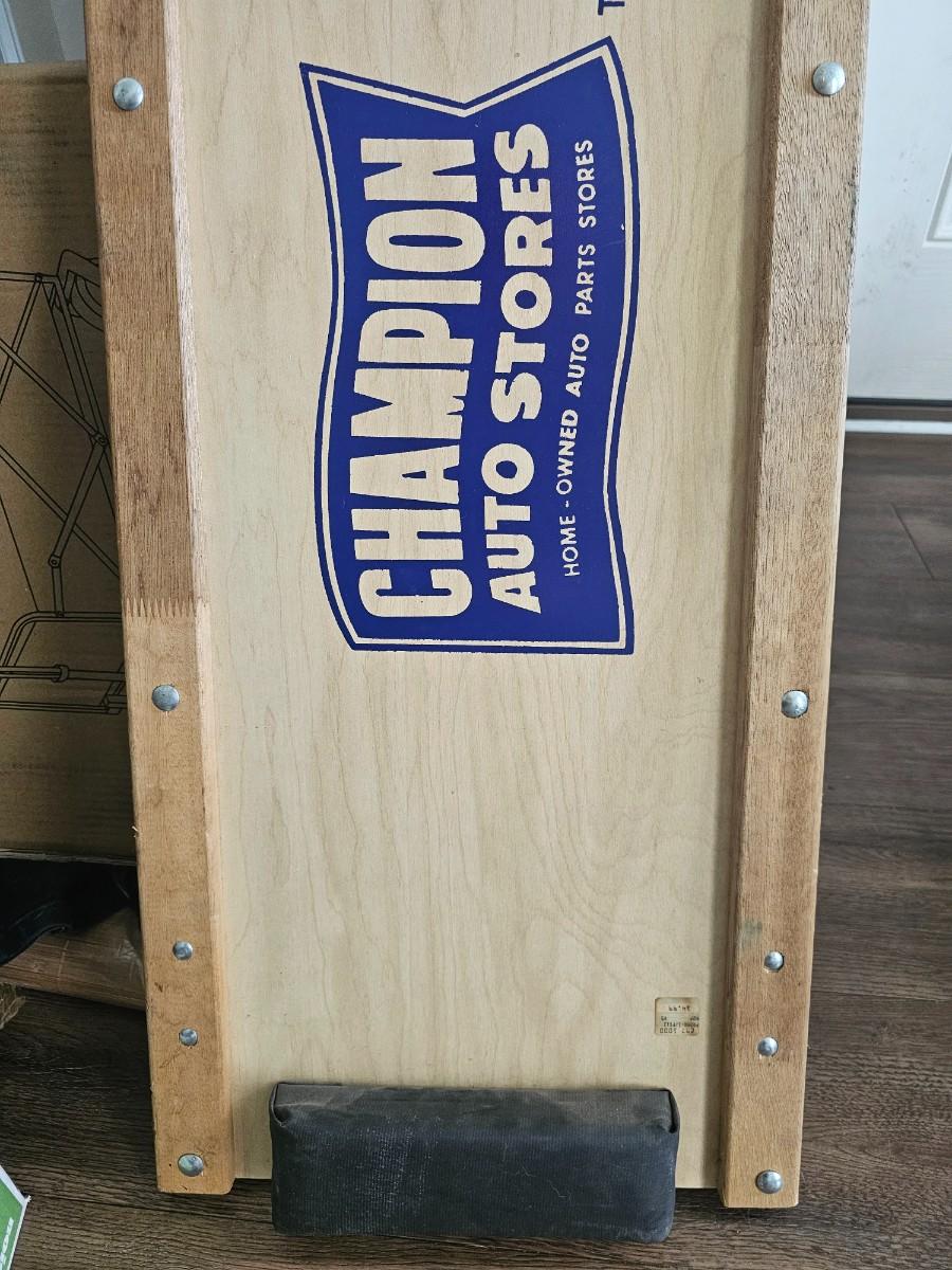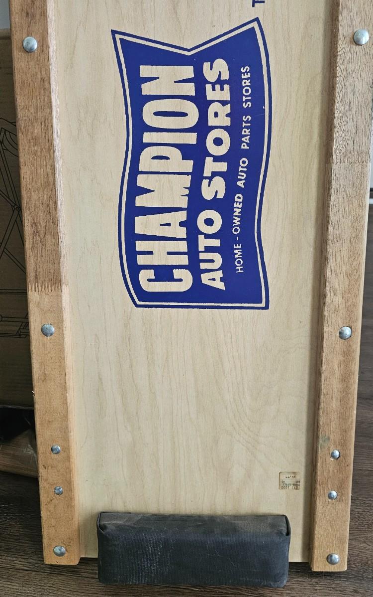 Vintage New Old Stock Champion Auto Stores Wood Automotive Creeper. Original price tag and all... Beautiful Condition Advertising, Car Enthusiasts, Collector's Piece. Great edition to any car garage or man cave!