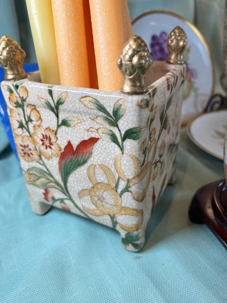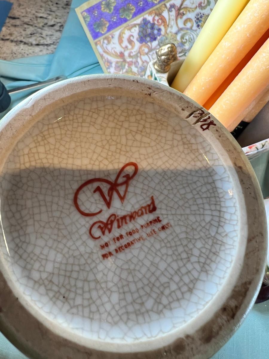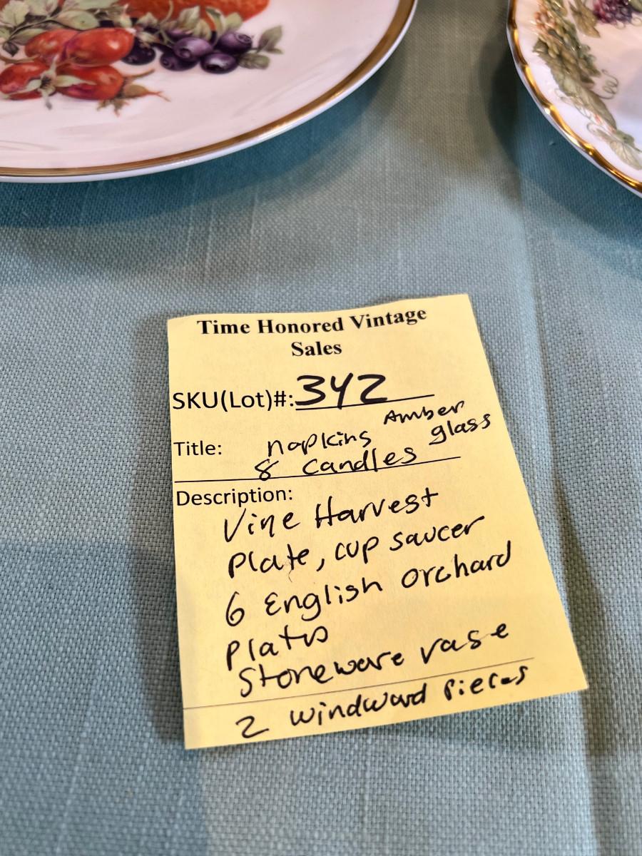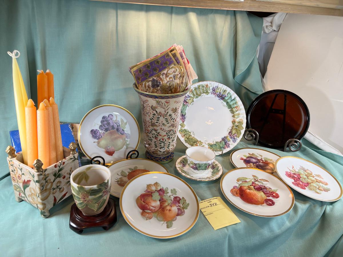 Royal Worcester Fine English Bone China set of "Vine Harvest" dessert plates, Winward vase and container ceramic,